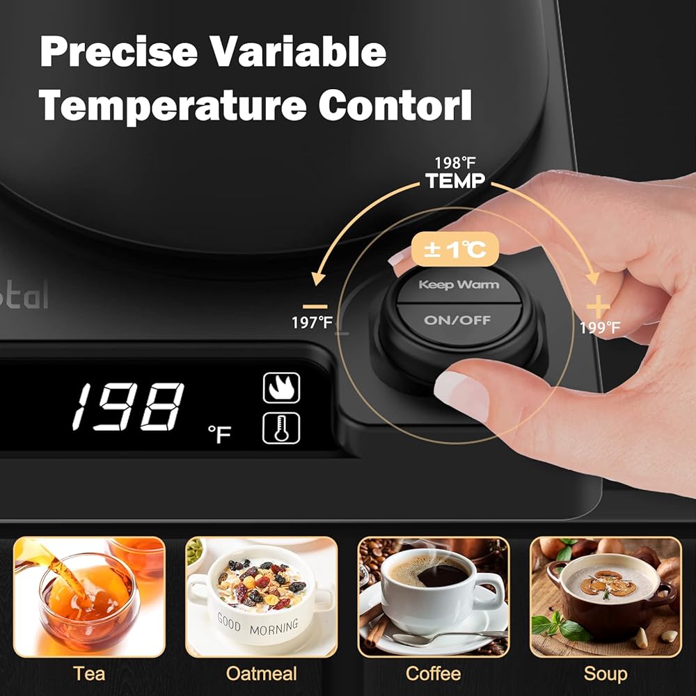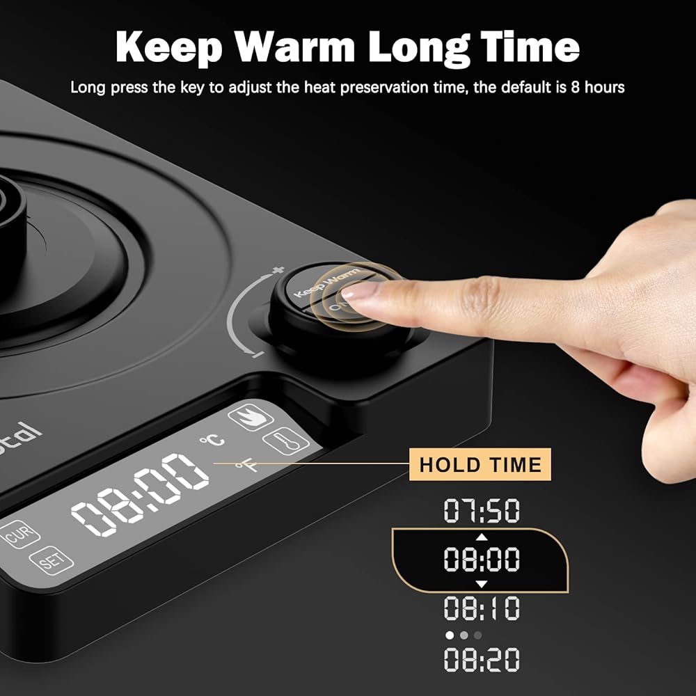 ♬【±1 درجة فهرنهايت/درجة مئوية تعديل دقيق والحفاظ على وظيفة الدفء】غلاية الشاي الكهربائية هذه مع تحكم دقيق في درجة الحرارة من أجل تخمير مثالي، تتراوح من 45 درجة مئوية إلى 100 درجة مئوية أو 113 درجة فهرنهايت إلى 212 درجة فهرنهايت (قابلة للتعديل في مرة واحدة). درجة). نصائح: يمكن لعلامة ميزان الحرارة بالضغط الطويل تبديل درجة فهرنهايت/درجة مئوية. تحافظ وظيفة الحفاظ على الدفء على الماء الساخن في غلاية الشاي الكهربائية لمدة 01:00-24:00 ساعة (افتراضي 08:00 ساعة)