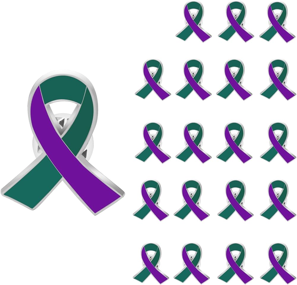 • دبوس شريطي ذو معنى: ارتداء أشرطة أرجوانية مع دبابيس يمكن أن يزيد الوعي العام بمرض الزهايمر، وإساءة معاملة الحيوانات، ومكافحة العنف، والألم المزمن، والتهاب البنكرياس المزمن، والتهاب القولون، والتليف الكيسي، والعنف المنزلي، والصرع، والألم العضلي الليفي، وسرطان الجهاز الهضمي، والساركوما العضلية الملساء، والذئبة، والتنكس البقعي، وداء الشحميات المخاطية، والتوعية بالاعتلال العصبي، وسرطان البنكرياس، والورم التوتي. السرطان، سرطان الغدة الدرقية، الأطفال غير المراقبين في السيارات، ضحايا العنف، الجرعة الزائدة، إساءة معاملة المسنين.