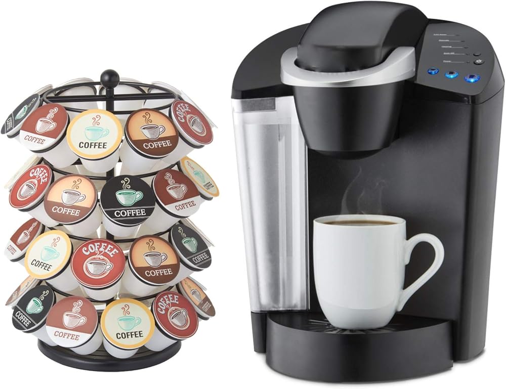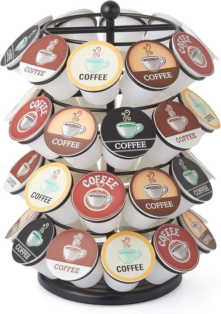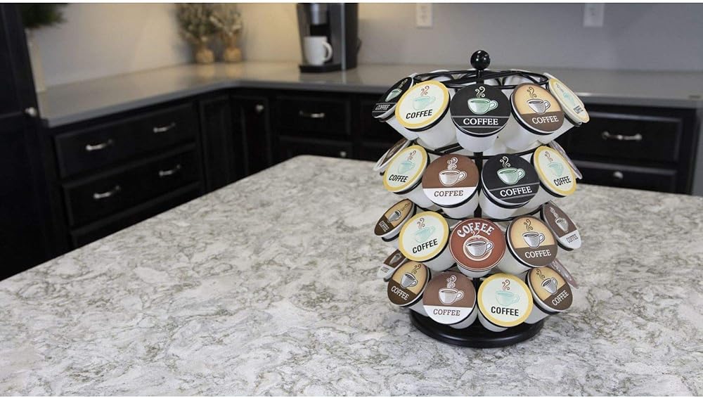 علبة قهوة دائرية: يتوافق حامل القهوة الدائري الأنيق هذا مع أكواب كيه ويعرض بشكل أنيق ما يصل إلى 40 من كبسولات القهوة المفضلة لديك. تدور قاعدة ليزي سوزان وتدور 360 درجة، مما يجعل من السهل والمريح العثور على النكهة المفضلة لديك واختيارها.