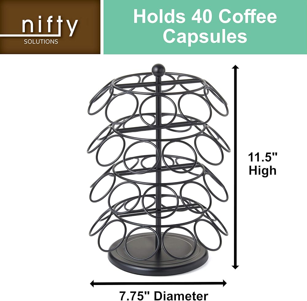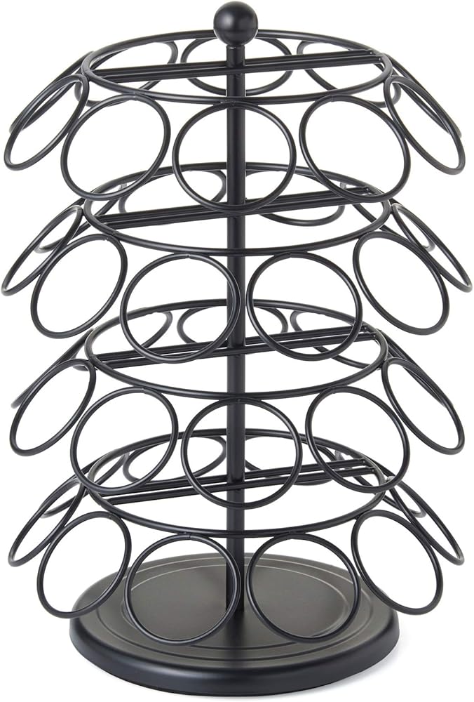 يجمع الحامل الدائري بسعة 40 كوب من مسحوق الطلاء الأسود السعة والأناقة معًا. سعة كبيرة جدًا تبلغ 40 درجة مساحة تخزين كافية حتى لأثقل شاربي القهوة. سيبدو التصميم الجميل رائعًا على أي سطح طاولة. قاعدة ليزي سوزان تدور بشكل جميل، مما يسمح باختيار نكهة القهوة المفضلة لديك بسهولة فائقة.