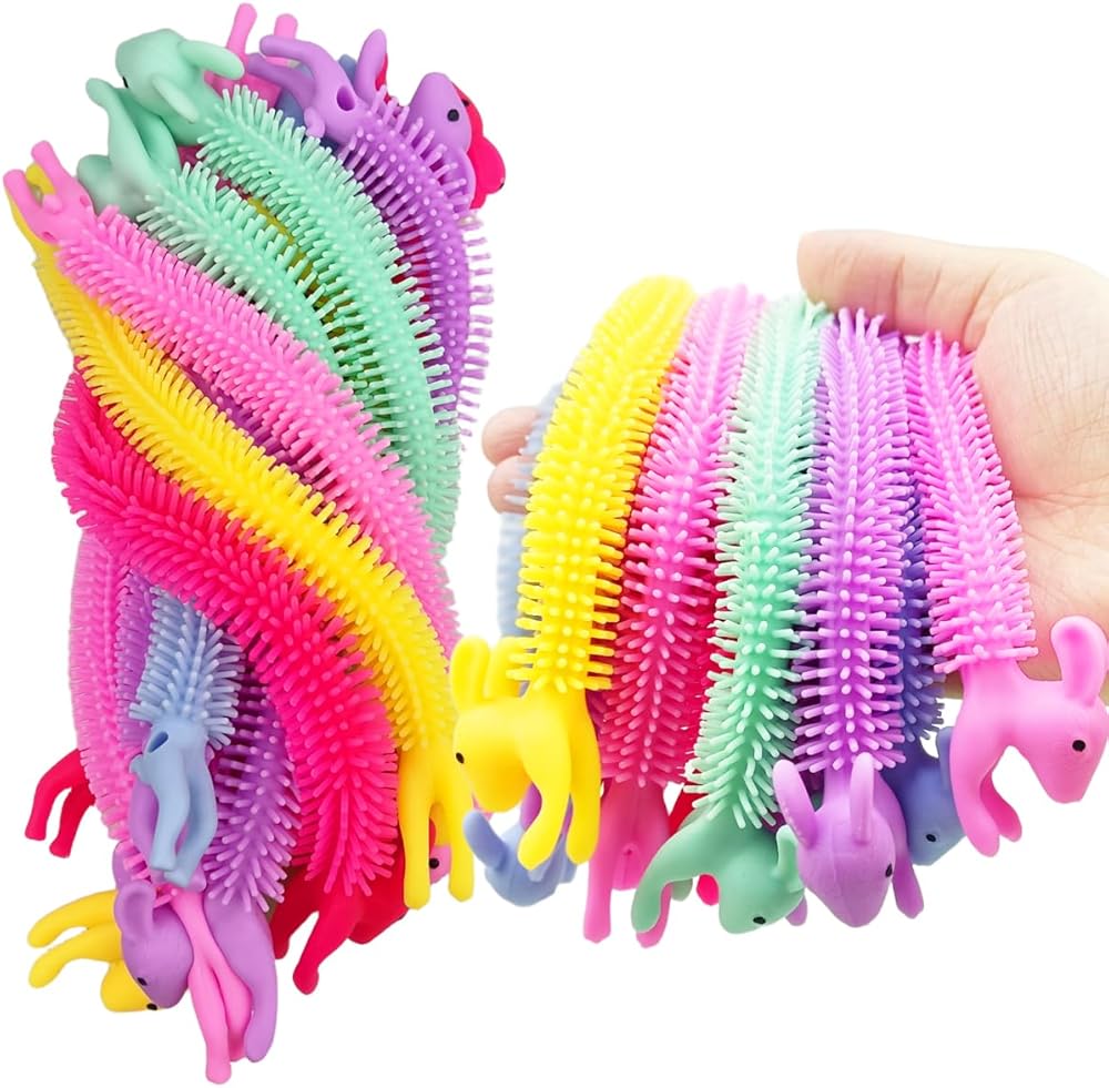 1. It's a new style fidget string, unlike smooth stretchy noodles, the bunny design with spike sensory string toy is more useful and interesting