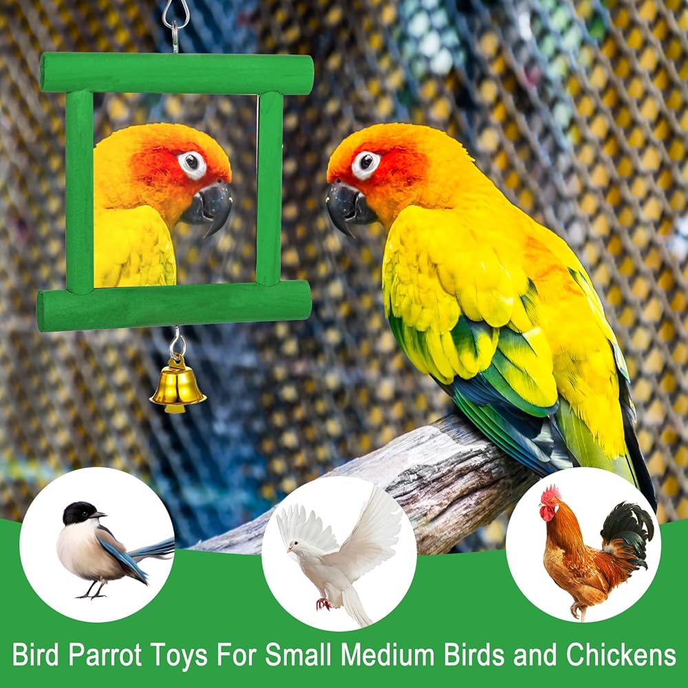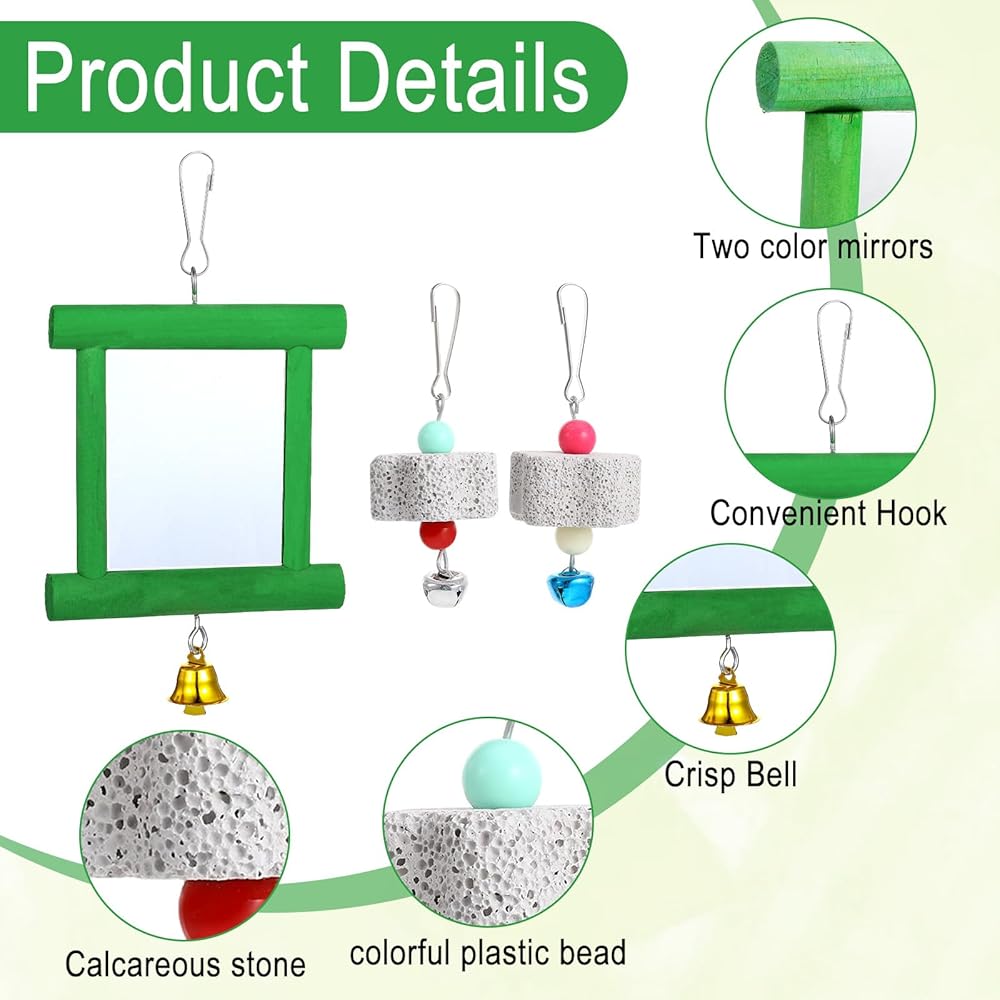 Packing List: 1 PCS Hanging Bell Mirror Toy + 2 PCS Beak Grinding Stone Pendants