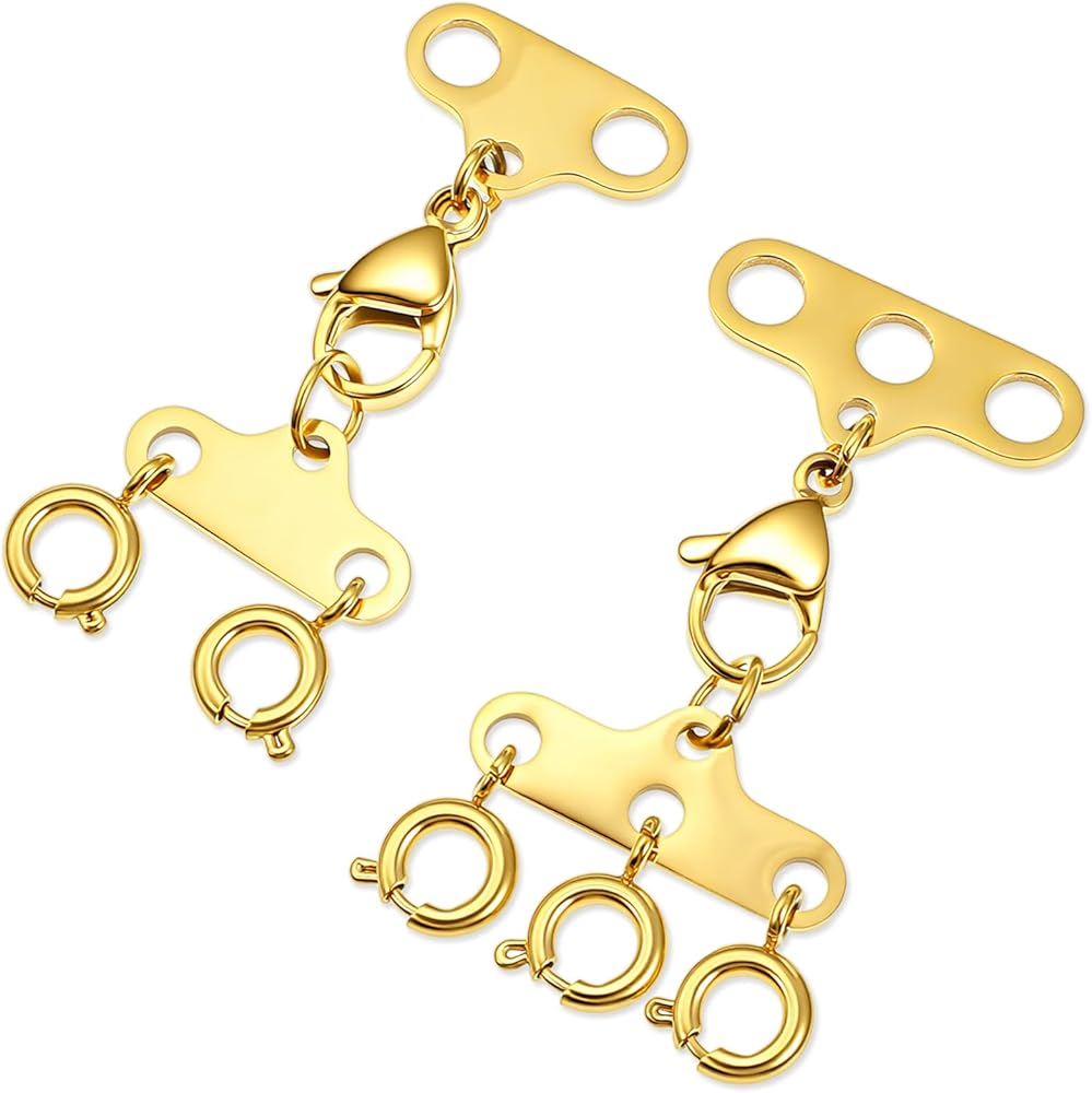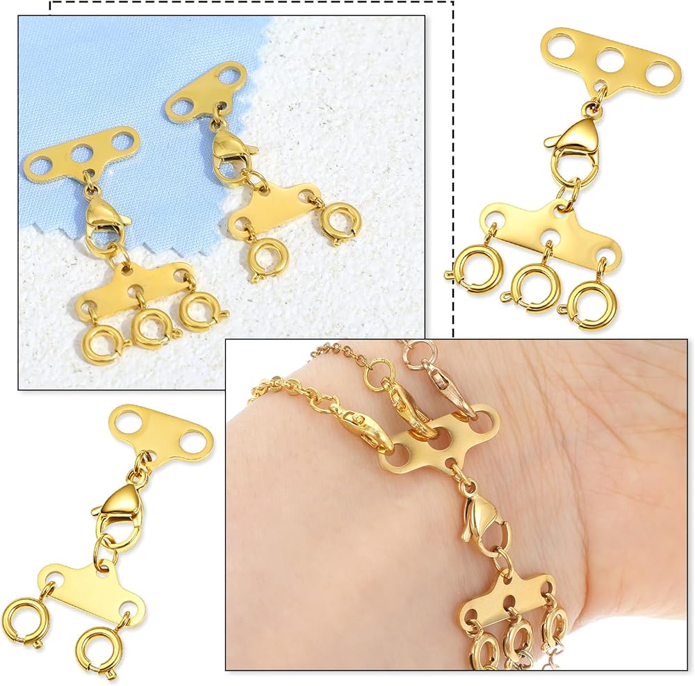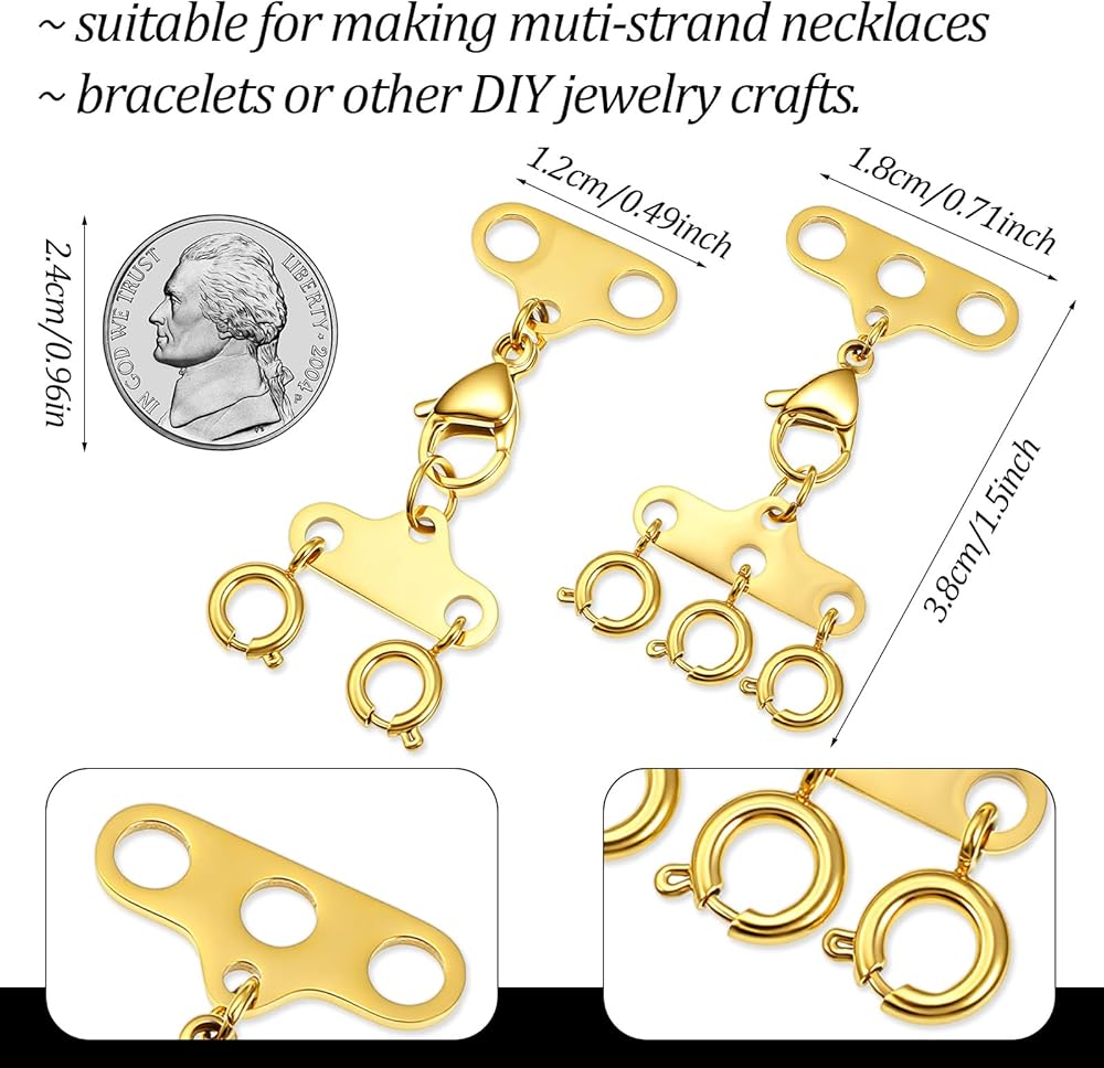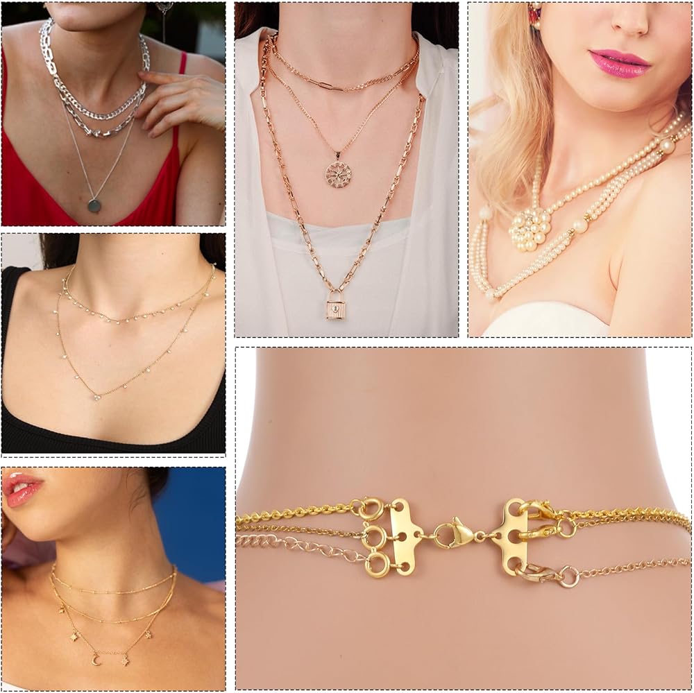 【Multi-Strand Tangle-Free Design】Our necklace layering clasps feature both 2-strand and 3-strand connectors, specifically engineered to organize and separate multiple necklaces, preventing them from tangling.