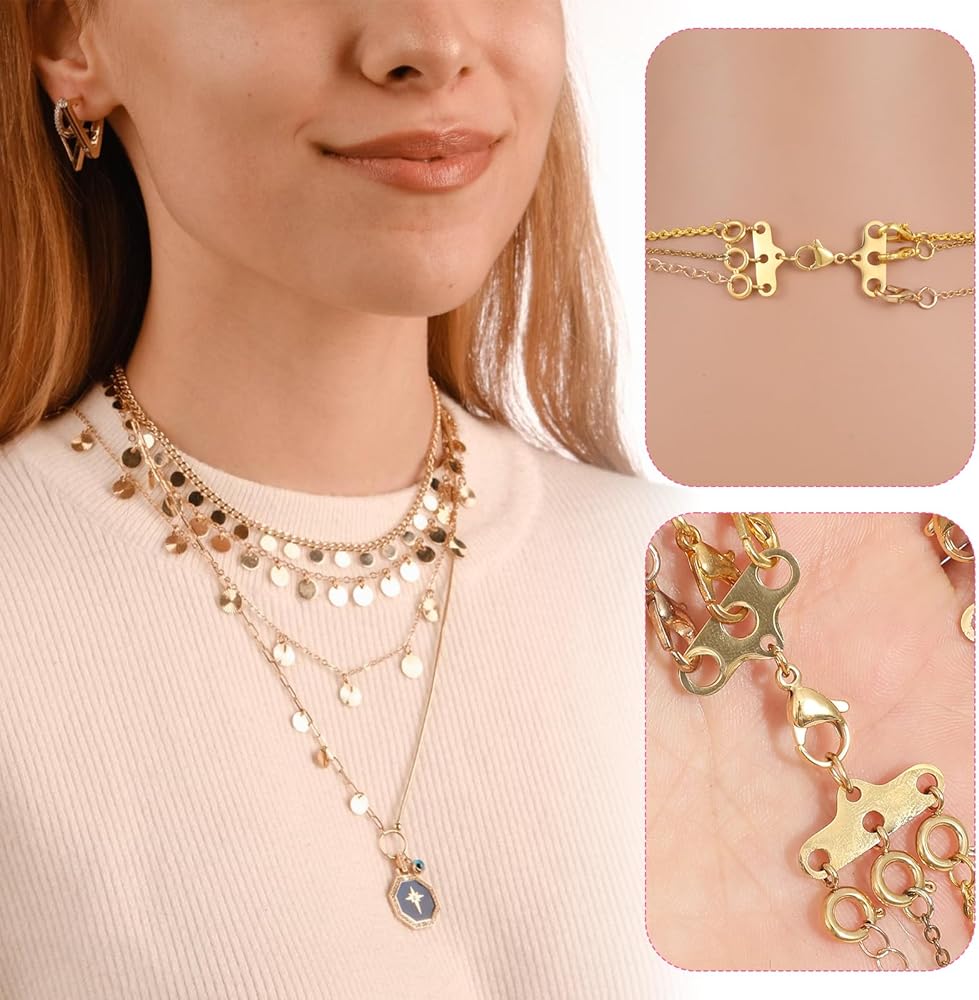 【Durable & Skin-Friendly Material】Crafted from high-quality stainless steel with a gold finish, these necklace separators offer exceptional durability and resistance to tarnishing, fading, and rust.