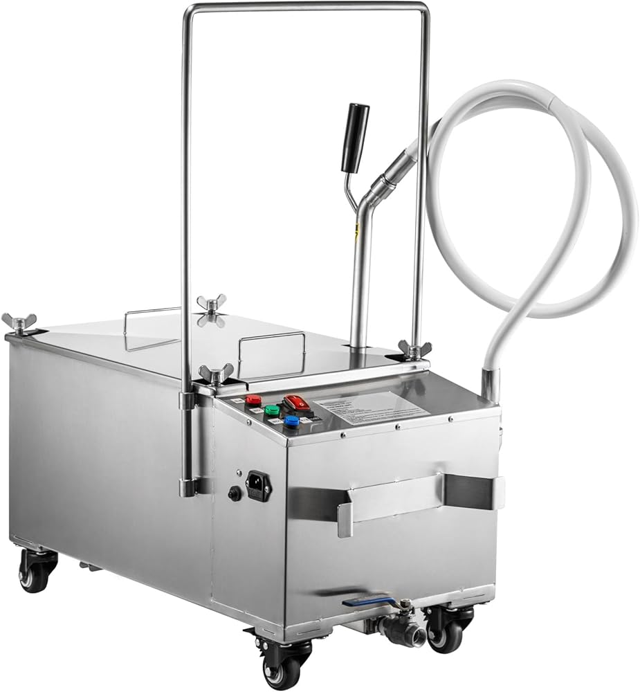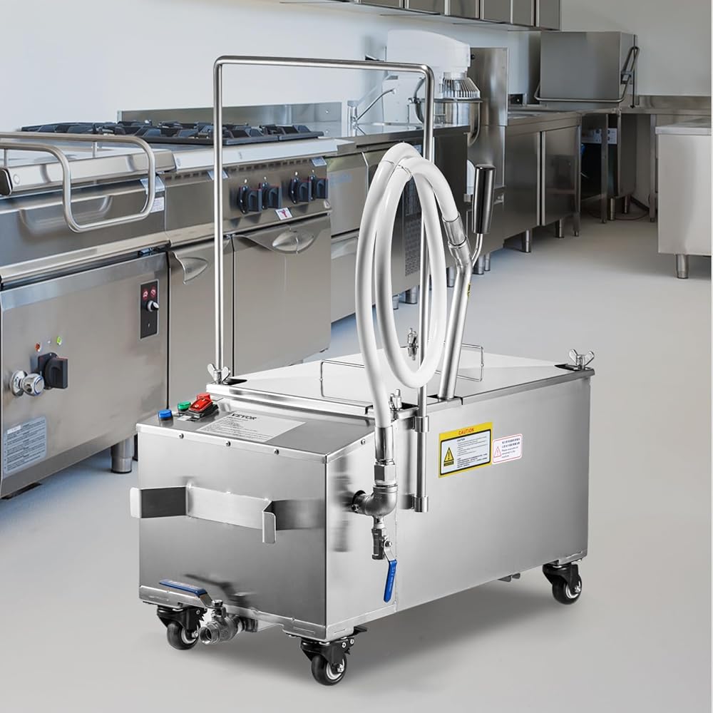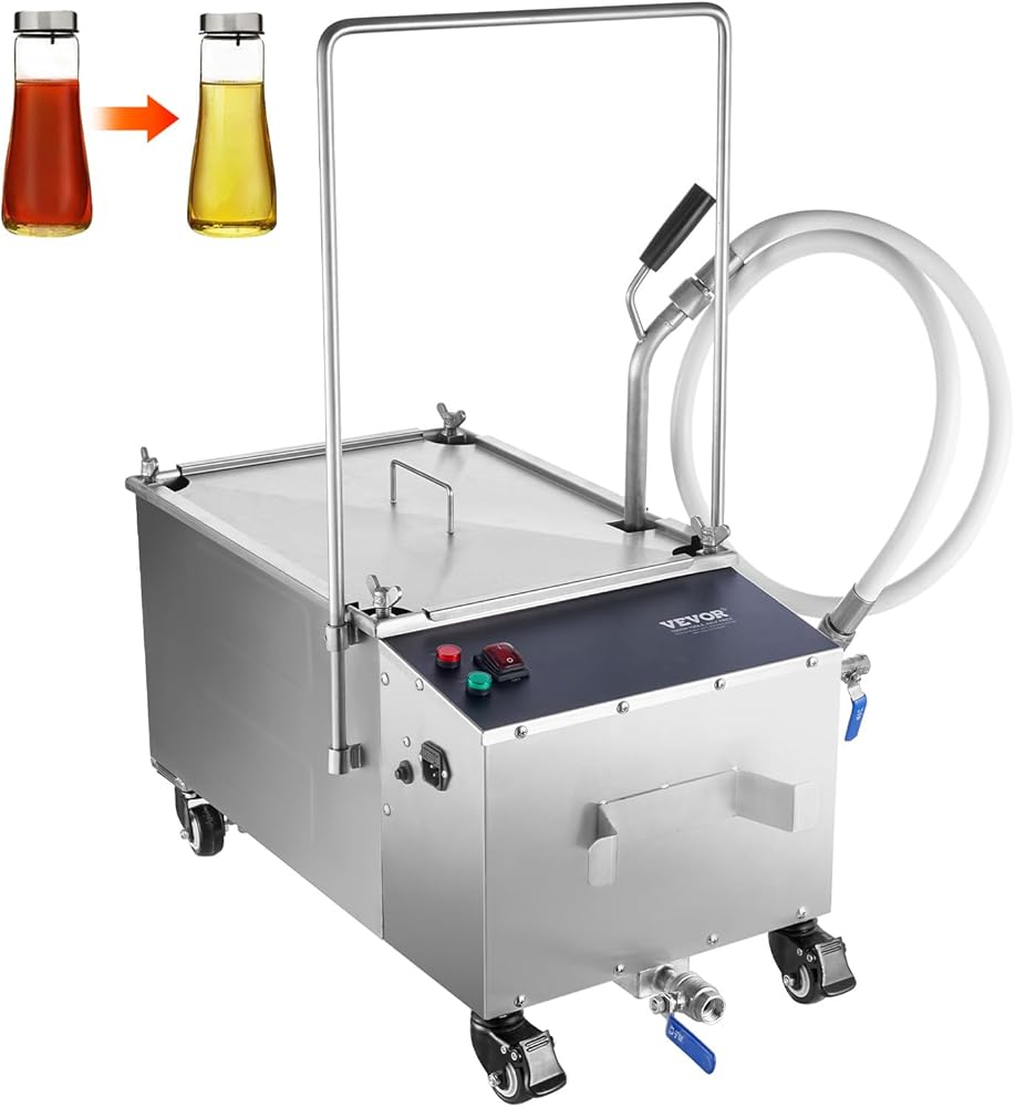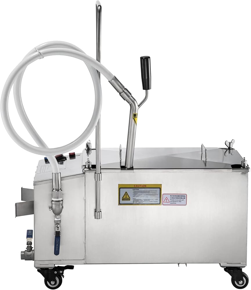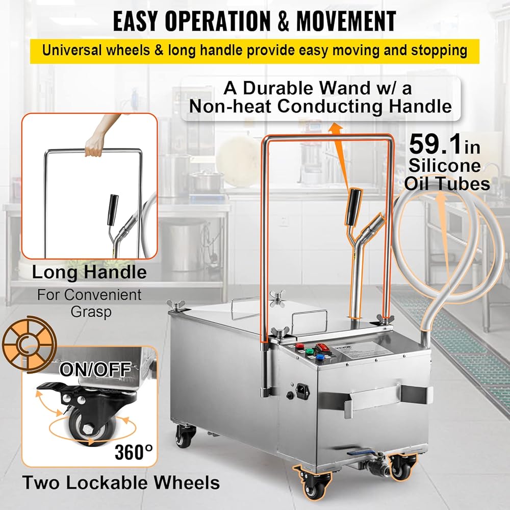 التشغيل والحركة المرنة: خرطوم الزيت مصنوع من مواد ثلاثية الطبقات من هلام السيليكا، وشبكة من الفولاذ المقاوم للصدأ، والتفلون. تم تصميم الأنبوب والعصا مقاس 59.1 بوصة (1.5 م) لنقل الزيت المفلتر إلى آلة المقلاة مع أقصى قدر من الراحة أثناء الاستخدام. تعمل العجلات الأربع العالمية (بما في ذلك عجلتان قابلتان للقفل) بالإضافة إلى المقبض الطويل على تحسين حركة الماكينة بشكل كبير.