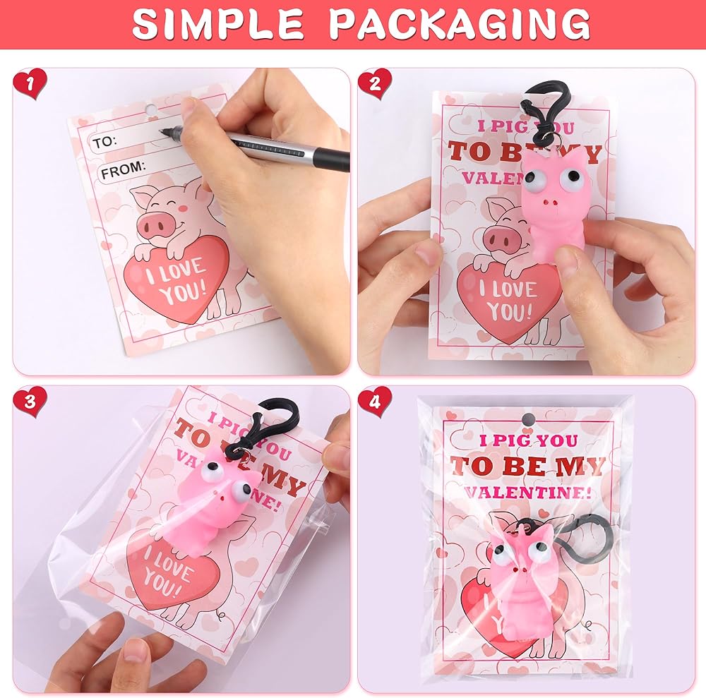 • [مجموعة هدايا رائعة لحفلات عيد الحب]: تتضمن هذه المجموعة 28 لعبة سلسلة مفاتيح على شكل حيوانات مضغوطة بعيون بارزة (7 تصميمات: الضفدع، الخنزير، البط، البطريق، الأخطبوط، القرد، والتمساح، 4 من كل منها)، 28 بطاقة كبيرة لعيد الحب مقاس 12.7 سم، و30 حقيبة هدايا شفافة. تأتي كل لعبة مع سلسلة مفاتيح مرفقة مسبقًا، مما يجعلها هدية ساحرة وعملية لحفلات المدرسة والفصل الدراسي