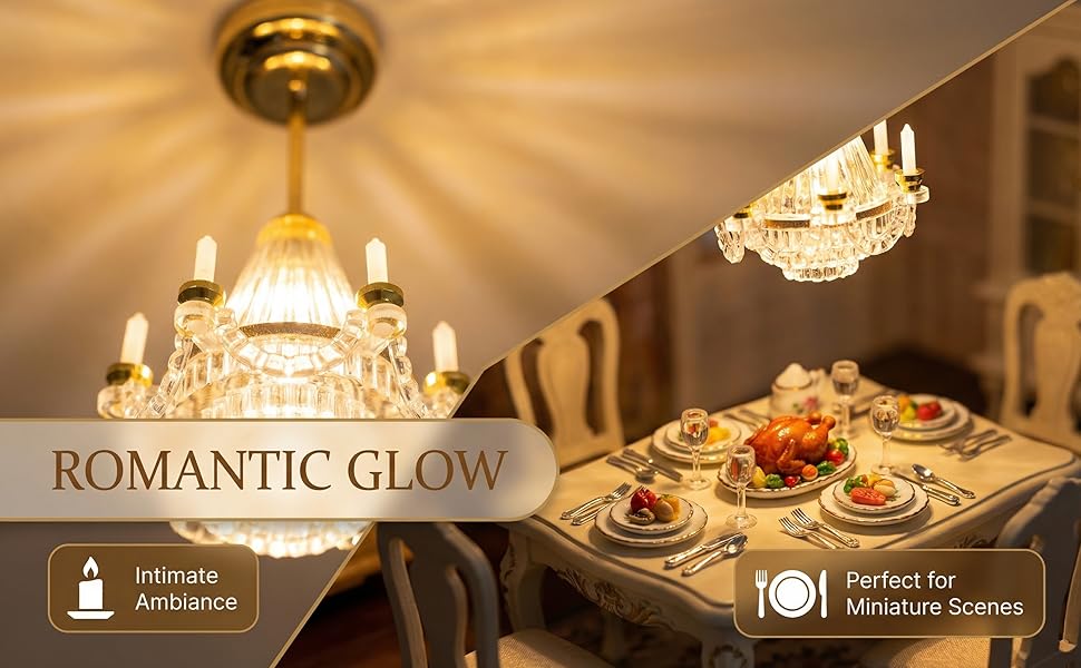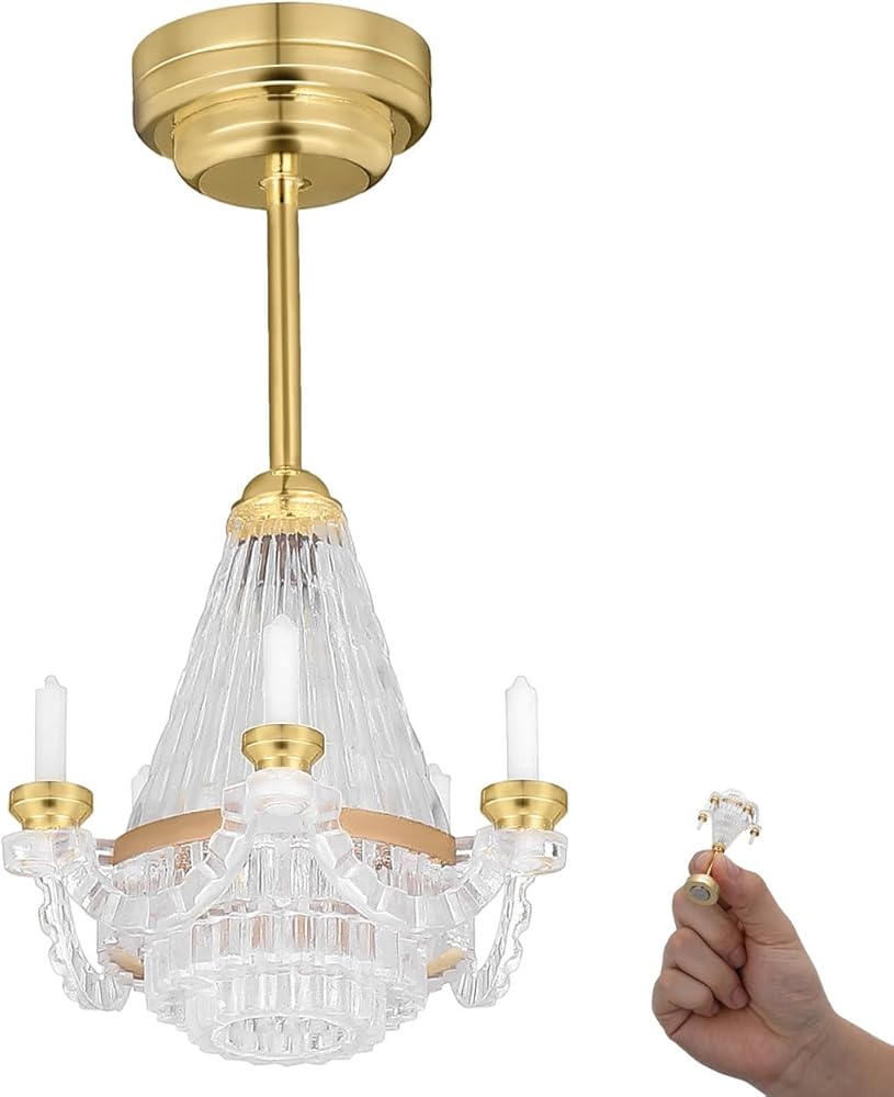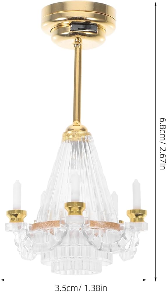 أضواء بمقياس 1:12: ثريا صغيرة مخصصة لبيوت الدمى بمقياس 1:12، الارتفاع الإجمالي 2.67 بوصة وعرض الثريا 1.38 بوصة، مثل ضوء قلادة حقيقي. ثريا كريستالية واقعية تثير عظمة قاعة الولائم. يضيف مصباح بيت الدمى الضوء الدافئ إلى المنزل المصغر، مما يجعل المنزل الصغير أكثر حيوية. يمكن للثريا الصغيرة أن تلهم إبداعنا وخيالنا، وهي ضرورية لعشاق النماذج المصغرة