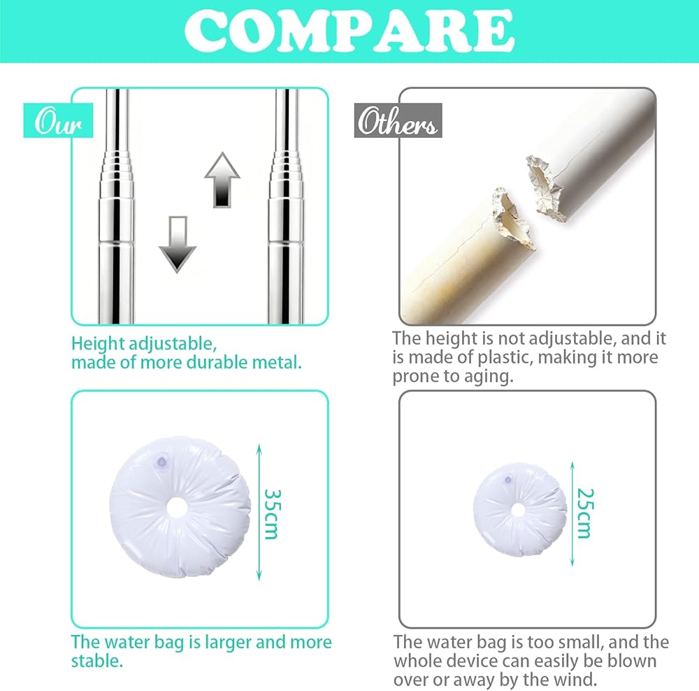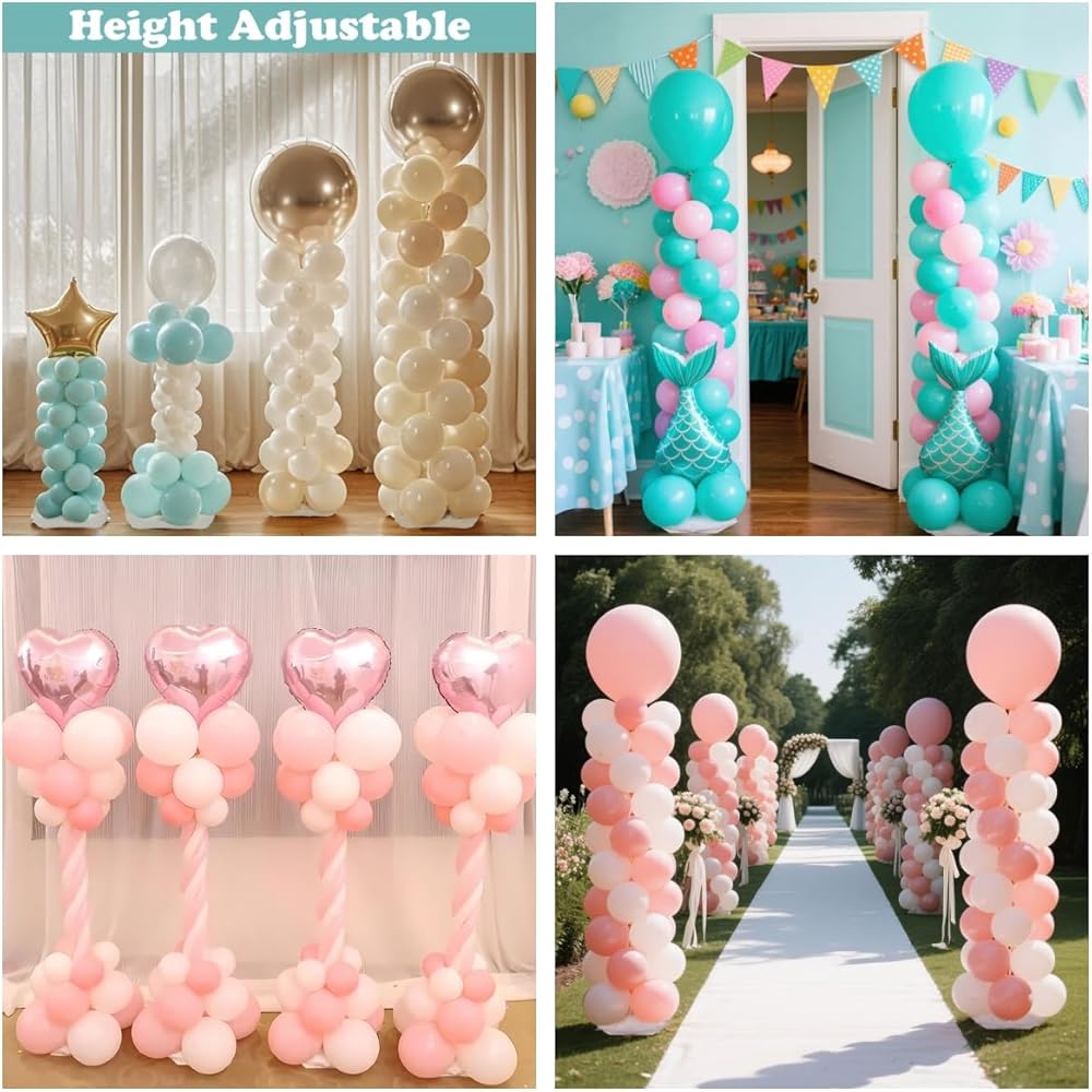 تصميم قوي ومستقر: مصنوع بهيكل تلسكوبي متكامل من الفولاذ المقاوم للصدأ، يوفر حامل عمود البالونات الخاص بنا دعمًا وثباتًا أفضل بكثير أثناء الأحداث مقارنة بحامل البالونات العادي خفيف الوزن وسهل الإطاحة.