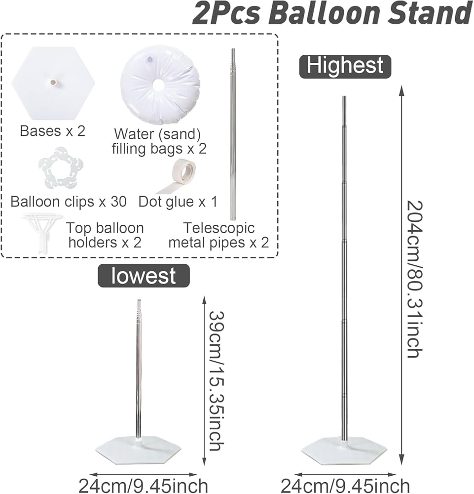 ارتفاع قابل للتعديل: لقد صممنا خصيصًا تلسكوبًا معدنيًا لمجموعة أعمدة البالونات الخاصة بنا المكونة من 2. التصميم التليسكوبي يجعل ارتفاع البالون قابلاً للتعديل من 16 بوصة إلى 80 بوصة، مما يمكنه تلبية احتياجات الديكور لمناسبات الاحتفال المختلفة بمرونة.