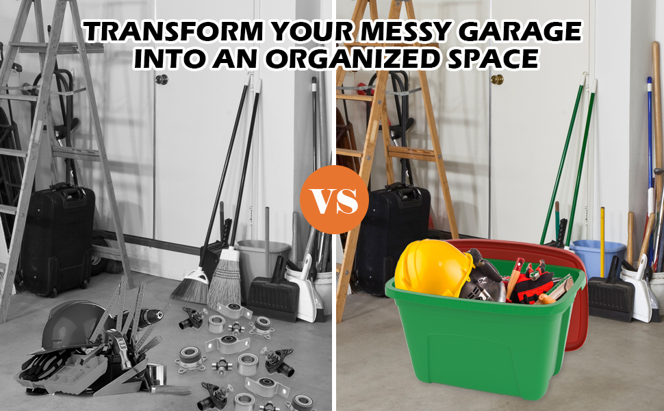 تحتوي على عبوتين للتخزين: مصممة بشكل مثالي لتنظيم ديكورات العطلات والفنون والحرف اليدوية والملابس والأحذية والمعدات الرياضية والمزيد. مثالية للاستخدام في المرآب أو الطابق السفلي أو العلية أو أي غرفة في منزلك.