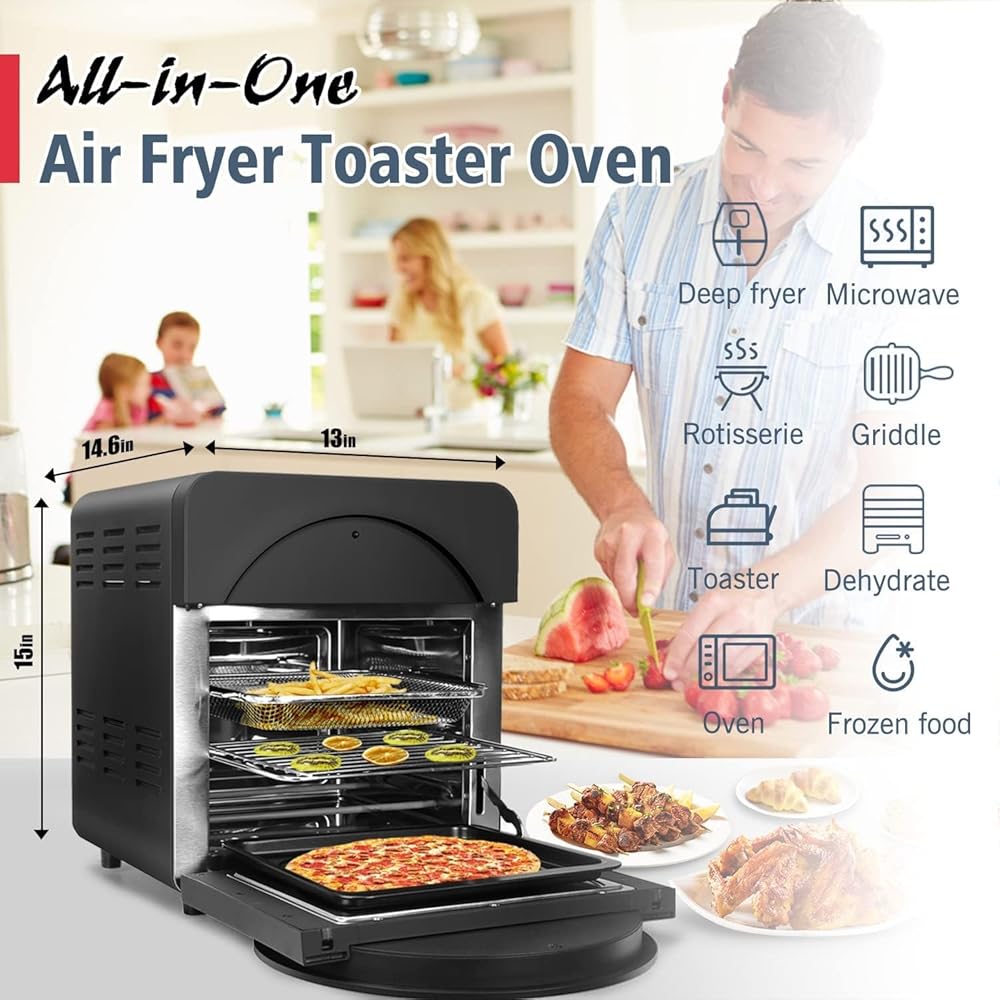 [حجم عائلي وموفر للمساحة] - يلبي الفرن الحراري للمقلاة الهوائية بسعة كبيرة 15.5QT ورف ثلاثي الطبقات احتياجات الطبخ المتنوعة، مما يسمح لك بطهي الكثير من الطعام لعائلتك أو أصدقائك المحبوبين في وقت واحد، كما أنه مناسب أيضًا الطبخ الفردي مطلوب. على الرغم من أنه فرن مقلاة هوائية كبير، إلا أنه لا يزال صغيرًا بما يكفي ليناسب سطح الطاولة بسهولة.