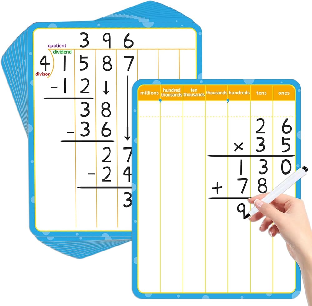 ممارسة الضرب والقسمة: تتضمن هذه المجموعة 12 بطاقة فلاش مزدوجة الجوانب للضرب والقسمة، مثالية لمساعدة الأطفال على ممارسة العمليات الحسابية الأساسية من خلال الكتابة. توفر كل بطاقة مساحة نظيفة للحسابات، وتدعم التدريب المتكرر. باعتبارها أدوات أساسية للرياضيات، فإنها تجعل أنشطة التعلم في مرحلة ما قبل المدرسة وتمارين الرياضيات المبكرة بسيطة، مما يساعد الأطفال على بناء الثقة في الضرب والقسمة.