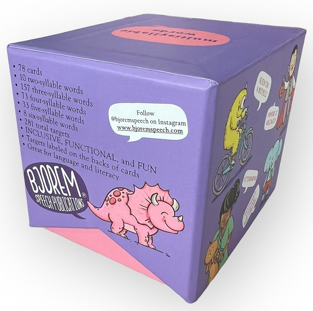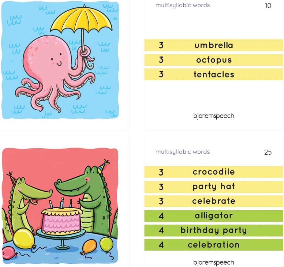 Versatile Multisyllabic Words: With a broad range of two to six syllable words, this deck caters to a wide array of speech therapy needs, making it perfect for children and adults alike.