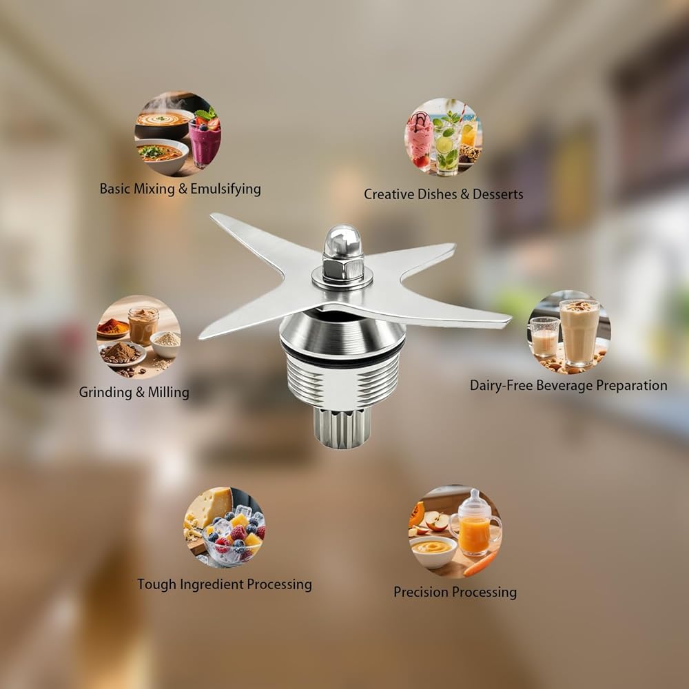 ✔️ أداء مزج بدرجة احترافية يتميز بشفرة من الفولاذ المقاوم للصدأ مقطوعة بالليزر من 4 نقاط تحافظ على الحدة من خلال الاستخدام المكثف. محامل مزدوجة الغلق تقاوم التآكل وتقلل الاحتكاك من أجل تشغيل أكثر سلاسة وعمر أطول للشفرة.