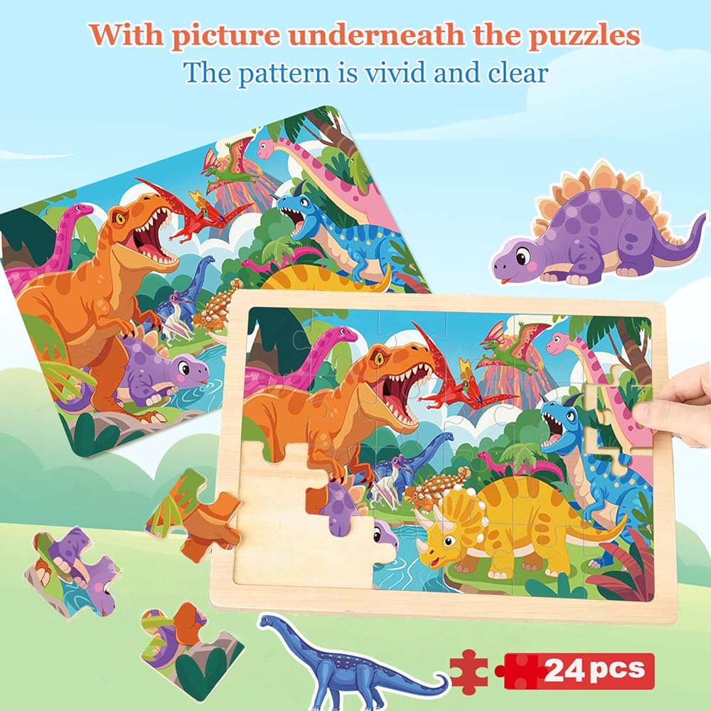 الألغاز الخشبية للأطفال الذين تتراوح أعمارهم بين 4-6، 6 حزم 24 جهاز كمبيوتر شخصى الخشب الديناصورات الحيوانات بانوراما الألغاز للأطفال الصغار الذين تتراوح أعمارهم بين 3-5، ما قبل المدرسة التعليمية الألغاز اللعب الهدايا للبنين والبنات