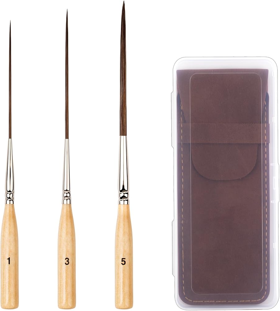 فرش تحديد طويلة، مجموعة فرش طلاء لتفاصيل شعر الأذن من 3 قطع، فرشاة تقليم لملء الزوايا، وضع العلامات، الخطوط العريضة، زيت الأكريليك بالألوان المائية