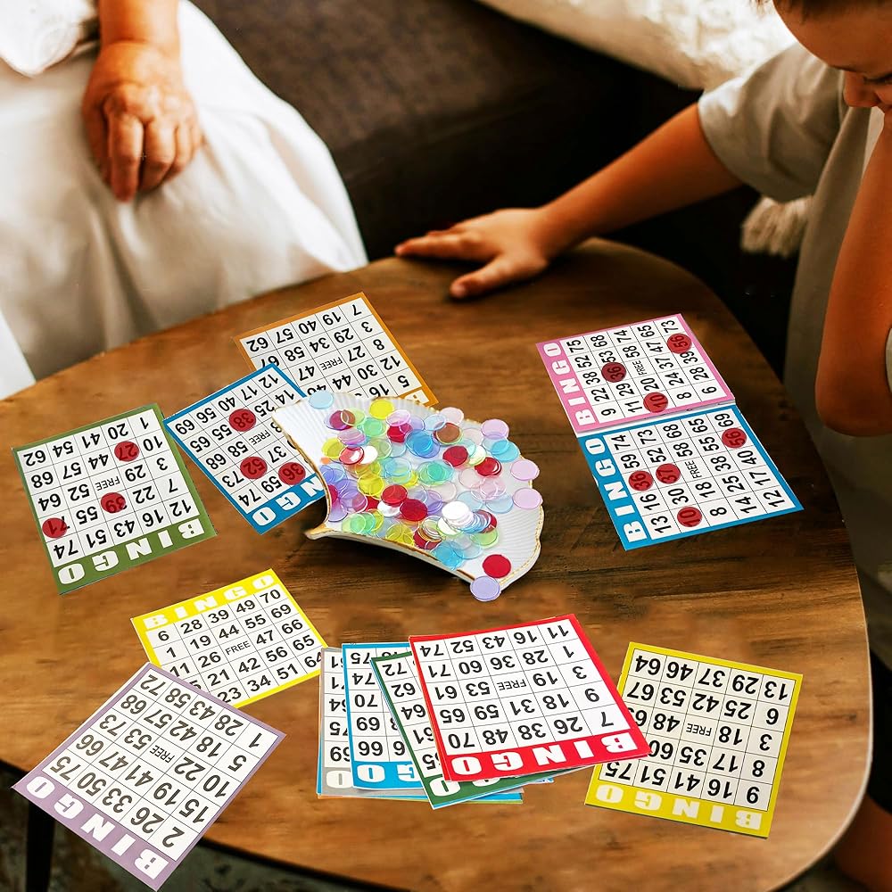 كتب بينجو: 1000 بطاقة بينجو مختلطة الألوان متينة بما يكفي للاستخدام المتكرر. يوجد 200 كتاب في كل مجموعة، وكل كتاب يحتوي على 5 بطاقات بنغو ملونة مختلفة. إجمالي 500 ورقة فريدة.