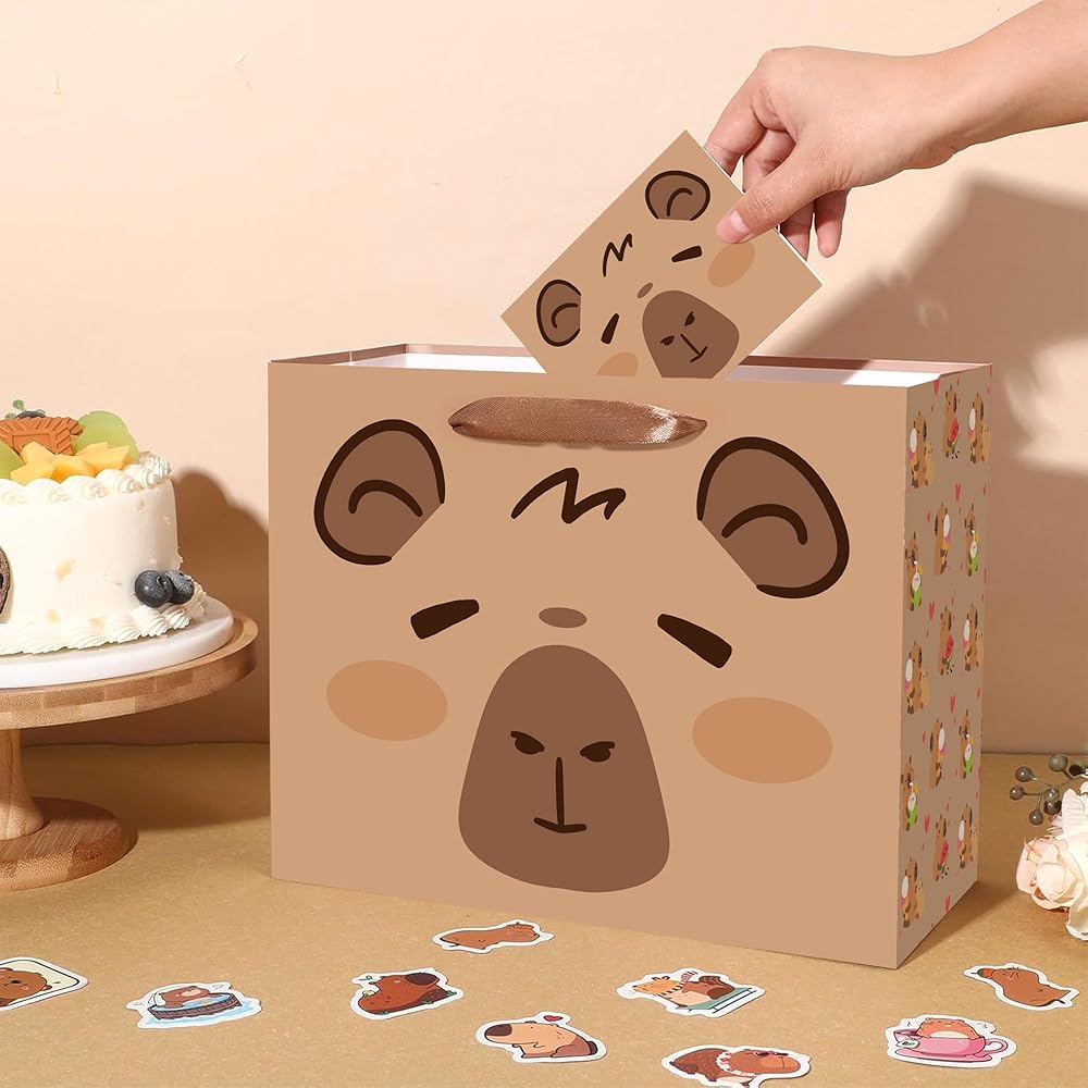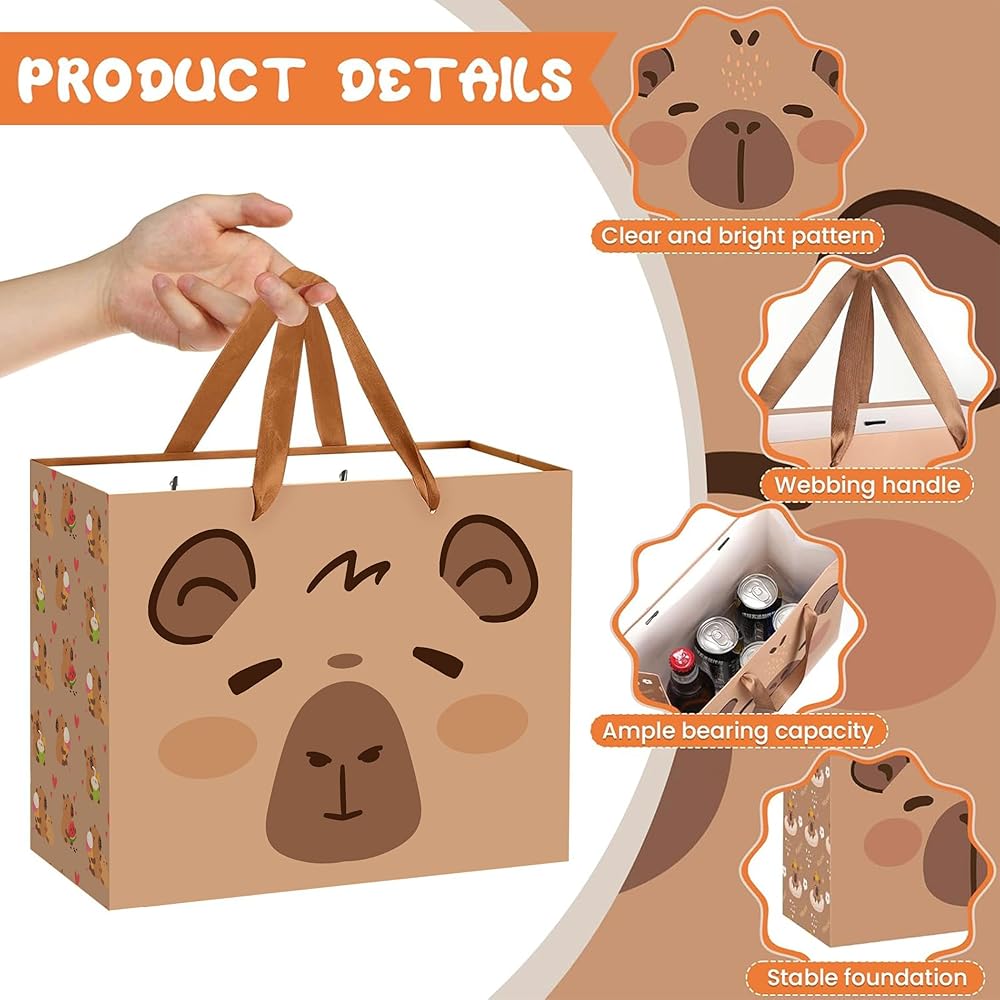 DESIGN FEATURES: Large-sized gift bag decorated with charming brown Capybara artwork, perfect for holding birthday presents and party items