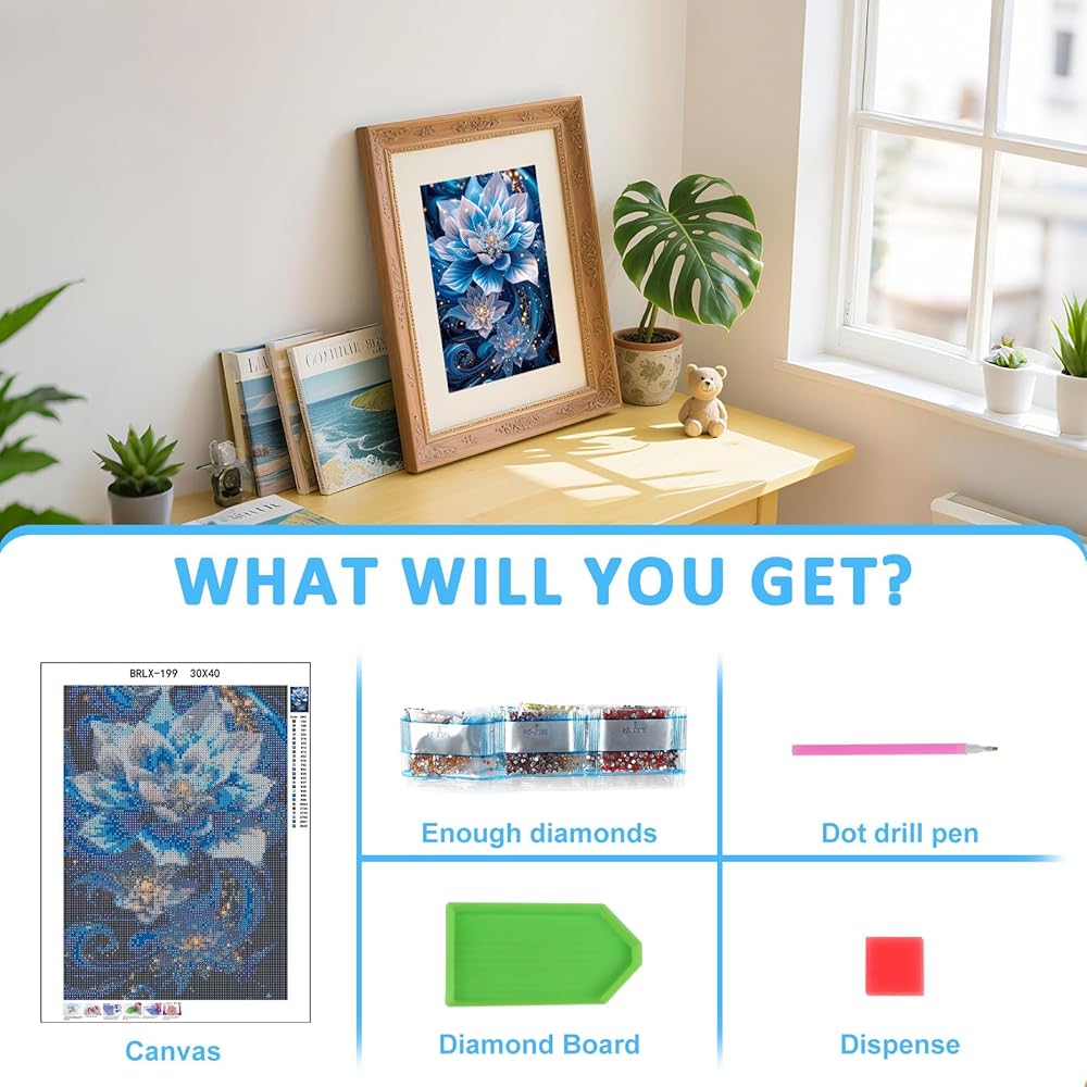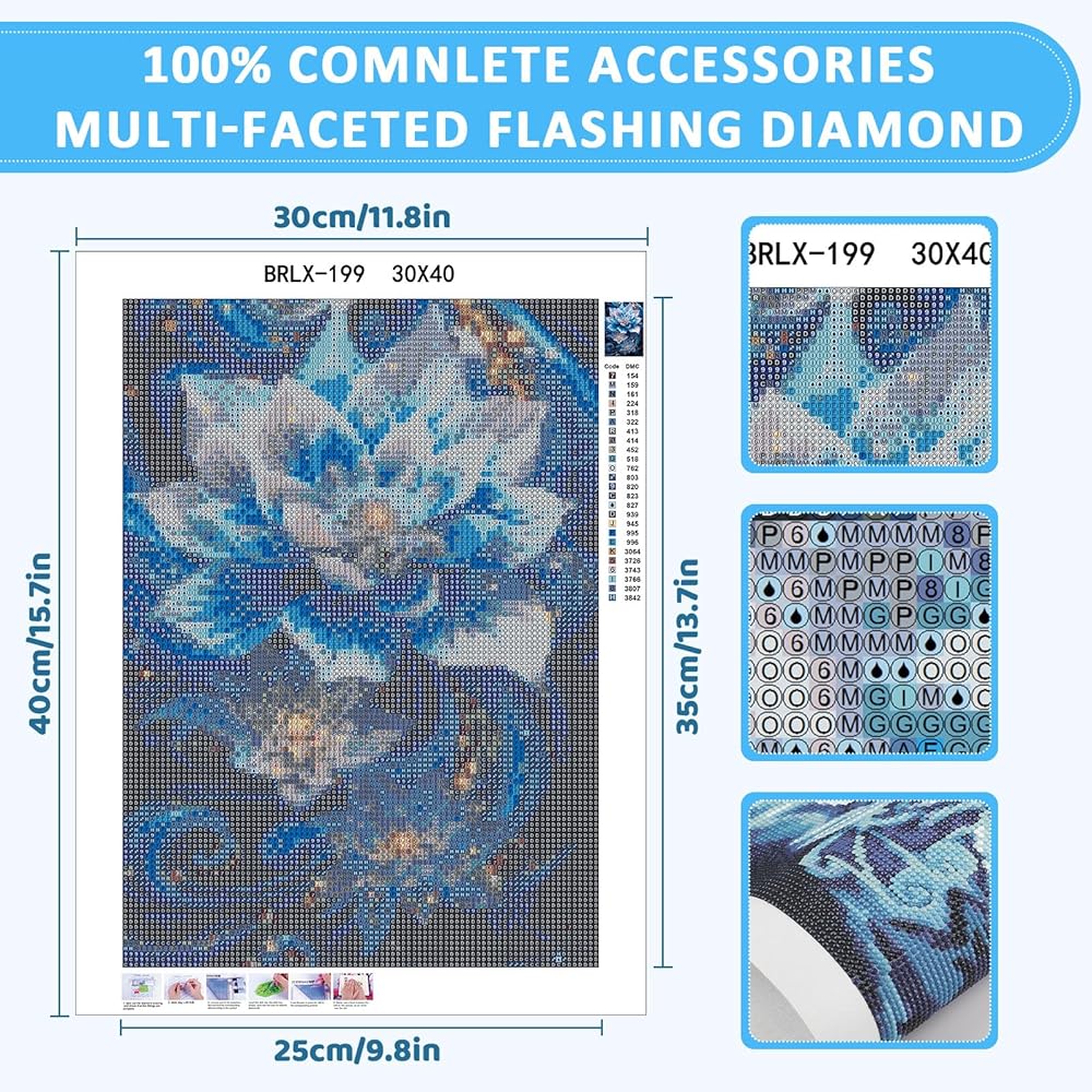 حجم وحزمة الفن الماسي: 12 × 16 بوصة لوحة ألماس كاملة، تتضمن 1 × لوحة قماشية عالية الوضوح، 2 × قلم ماسي مدبب، 1 × صينية ألماس مكعبة، 1 × طين غراء أحمر، 1 × غطاء قلم، 5 × أكياس صمامات. ما يكفي من الماس المستدير الملون