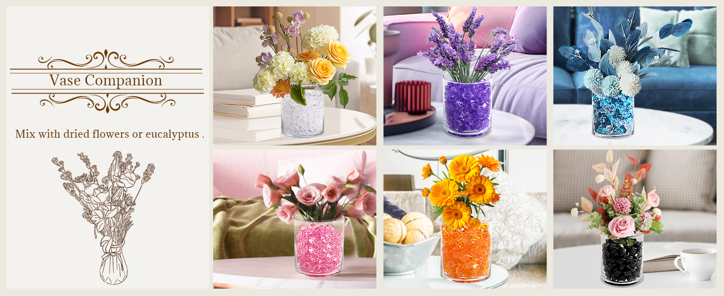 تطبيقات ديكور متعددة الاستخدامات: خرز حشو المزهرية جيد لمجموعة واسعة من الاستخدامات الإبداعية - املأ المزهريات، أو تزيين طاولات الطعام، أو رفع عروض الزفاف، أو بمثابة دعامات للتصوير الفوتوغرافي، أو تزيين خزانات الأسماك، أو تعزيز إعدادات الزراعة المائية.