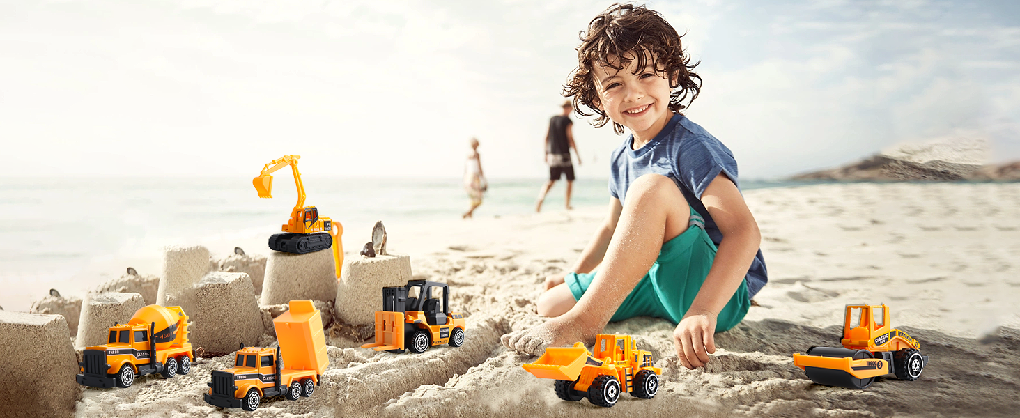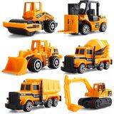 【مجموعة شاحنات بناء صغيرة مكونة من 6 قطع】تتضمن شاحنات مركبات البناء 1 حفار، 1 جرافة، 1 مدحلة طريق، 1 خلاط أسمنت، 1 شاحنة قلابة، 1 رافعة شوكية. مجموعة نماذج مركبات البناء مع هدايا ألعاب سيارات البناء المصبوبة للأطفال بعمر 3 4 5 6 سنوات.