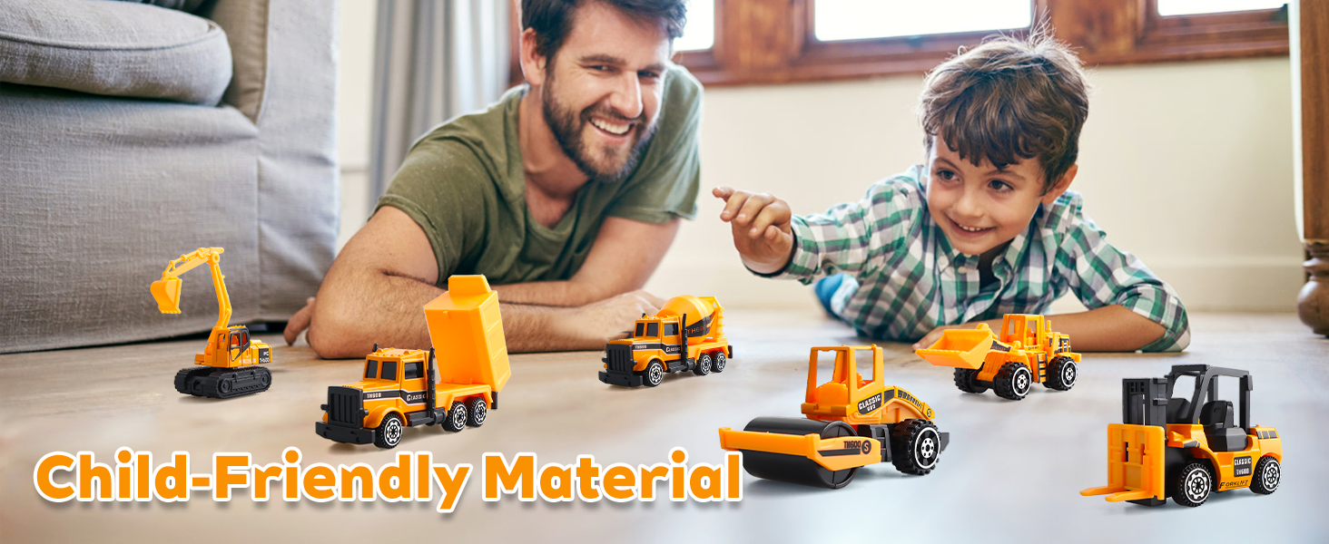 【مادة معدنية وبلاستيكية متينة】مركبات البناء هذه آمنة ومتينة ومصممة لتدوم طويلاً. الجزء الرئيسي من مجموعات الألعاب المتينة للأطفال مصنوع من المعدن والباقي مصنوع من مادة ABS. بعض المفاصل متحركة، وهو أمر مثير للاهتمام.
