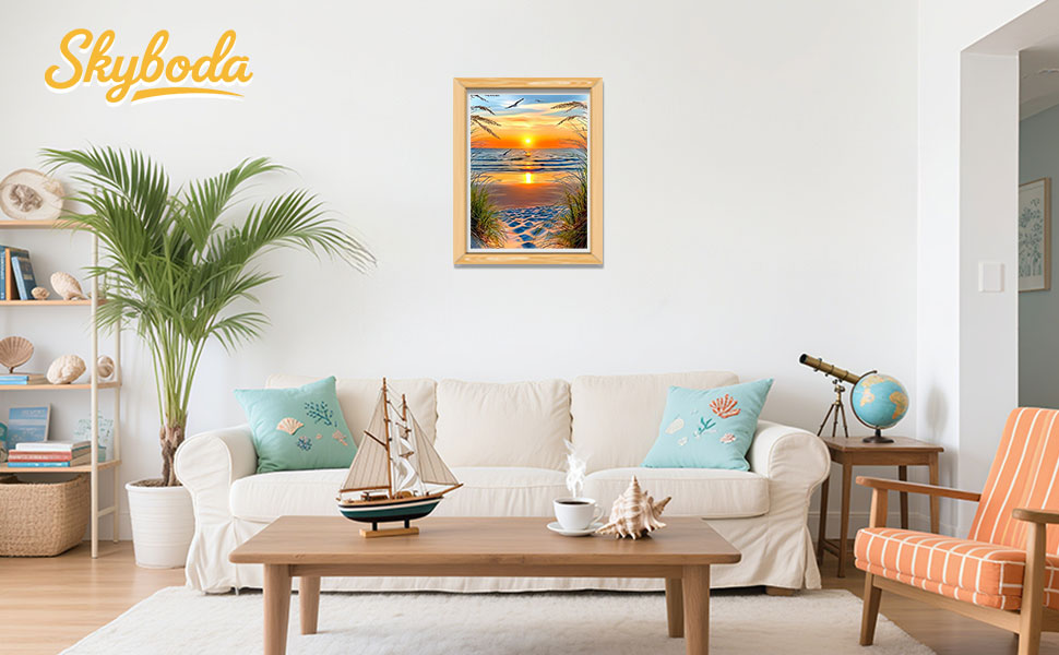 Skyboda Sunset on The Beach مجموعات الطلاء الماسي 5D للبالغين، مجموعة فنية ماسية من القصب على شاطئ البحر للمبتدئين، نقاط ماسية مستديرة كاملة مع أحجار كريمة فنية لتزيين جدران المنزل مقاس 12 × 16 بوصة