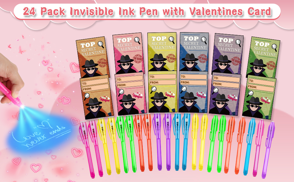 24 حزمة من هدايا عيد الحب للأطفال في الفصل الدراسي قلم تجسس بالحبر غير المرئي مع بطاقات عيد الحب، وبطاقات تبادل عيد الحب المدرسية هدية تبادل الفصول الدراسية للأولاد والبنات in Kuwait
