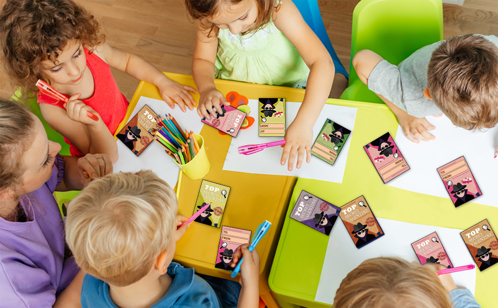 • [بطاقات عيد الحب ذات طابع المحقق]: تصميمات البطاقات الستة الملونة، بظلال مثل البرتقالي والوردي والأخضر، تكمل أقلام الحبر غير المرئية بشكل مثالي. تم تصميم هذه البطاقات التي تحمل طابع التجسس لإثارة خيال الأطفال وجعل التبادلات في عيد الحب لا تُنسى. إنها طريقة مثيرة للأطفال للتعبير عن إبداعهم ومشاركة الرسائل الممتعة مع الأصدقاء