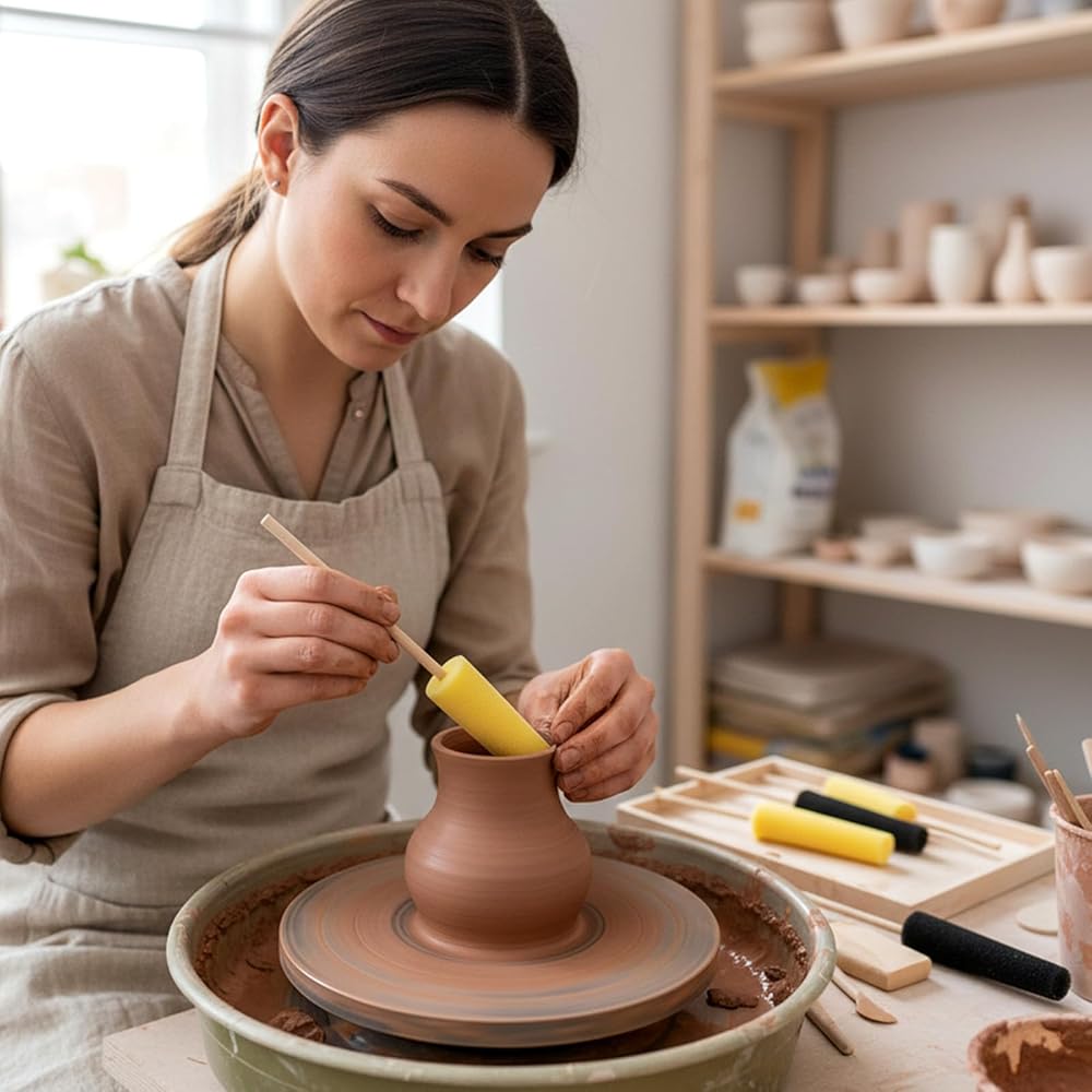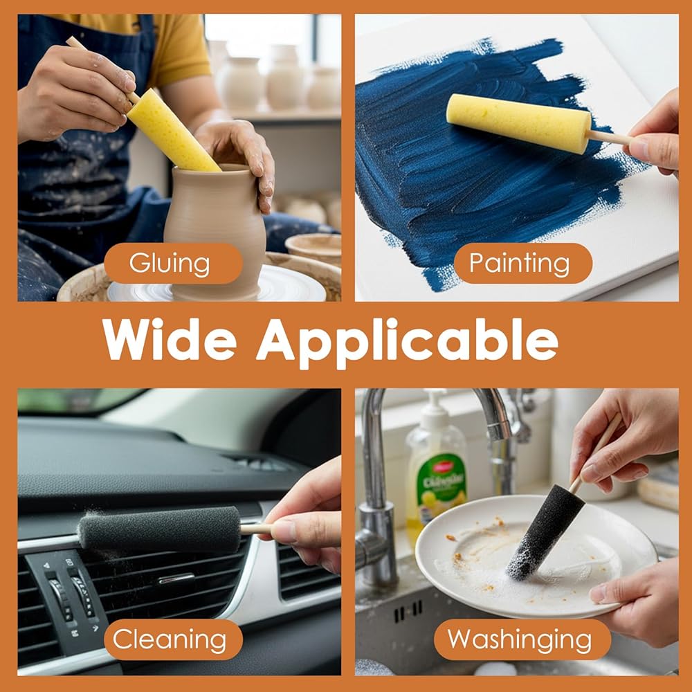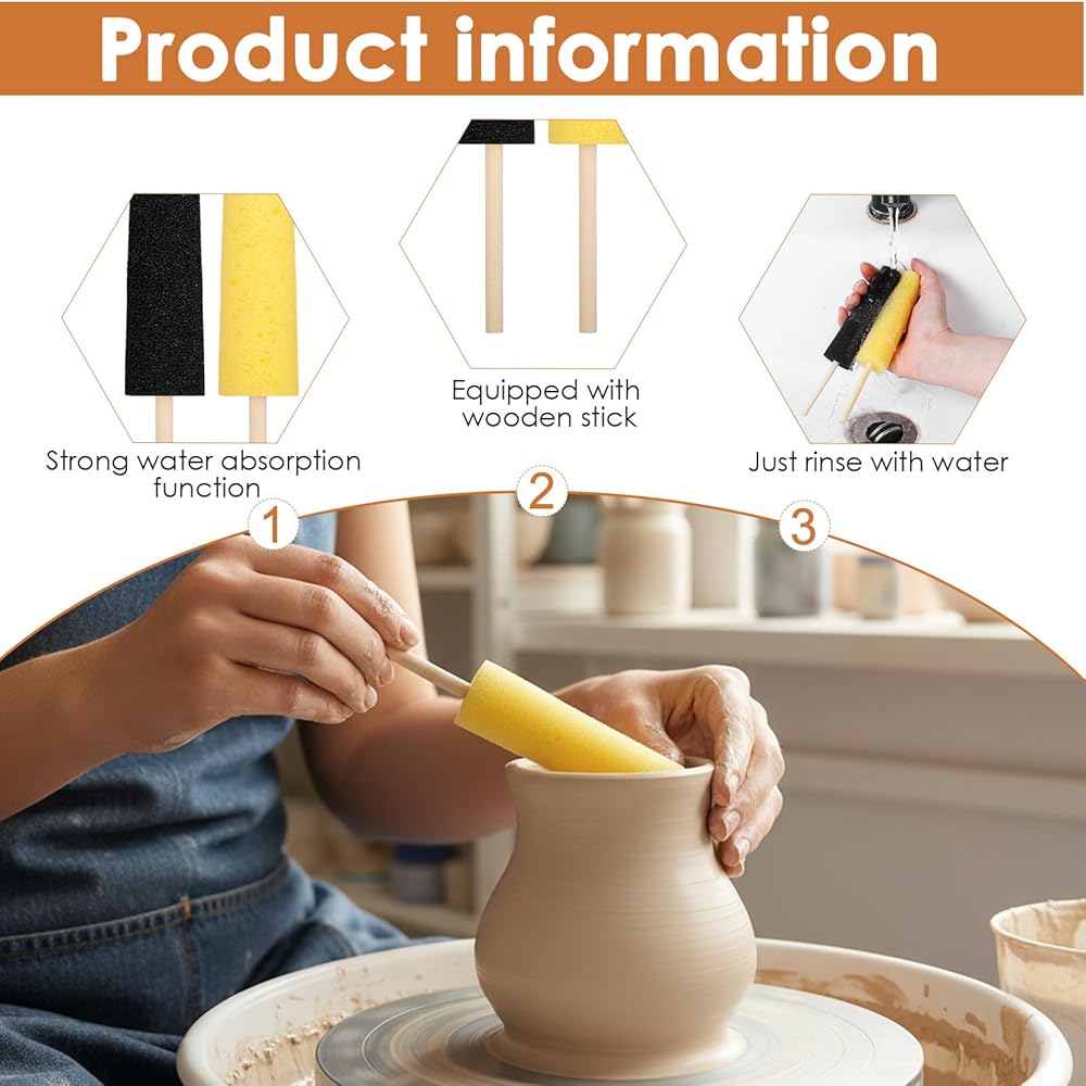 【Complete 6-Piece Set】With six sponge sticks featuring quality sponge heads and wooden handles, you'll always have the right tool available. This versatile set provides everything needed for different stages of ceramic work, from rough shaping to delicate finishing touches.