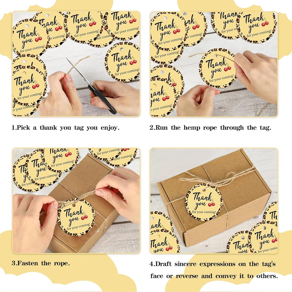 جاهزة للاستخدام: تأتي كل بطاقة مع فتحة مثقوبة مسبقًا، مما يجعل من السهل ربطها بالهدايا أو الهدايا أو حقائب الحفلات. التصميم الأنيق والرسالة القلبية يجعلها إضافة مدروسة لأي احتفال.