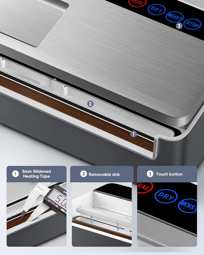 • [تجربة سهلة الاستخدام] تم تصميم آلة الغلق مع عملية إغلاق أوتوماتيكية بالكامل، وأضواء مؤشر LED، ومقبس كهربائي ولوحة التحكم الرقمية التي تعمل باللمس، مما يوفر تجربة سهلة الاستخدام لك.