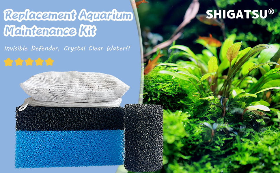 مجموعة صيانة حوض السمك البديلة من SHIGATSU المكونة من 4 قطع لفلتر الطاقة AquaClear 50، تتضمن حشوة إسفنجية لحوض السمك، وإسفنجة كربونية، ووسائط حيوية وإسفنجة ما قبل الفلتر