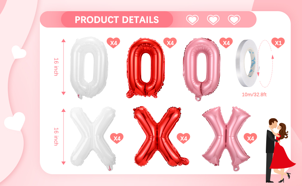 استخدامات متعددة: بالونات الحروف XOXO هذه ليست مخصصة لعيد الحب فقط؛ يمكن تطبيقها في مجموعة متنوعة من الأحداث مثل الذكرى السنوية، أو المفاجآت الرومانسية، أو حفلات الخطوبة، أو ديكور المنزل الرومانسي، أو أي حدث آخر حيث يكون الحب هو الموضوع الأساسي؛ يمكن أن تتحمل مادة الرقائق قسوة هذه الأحداث