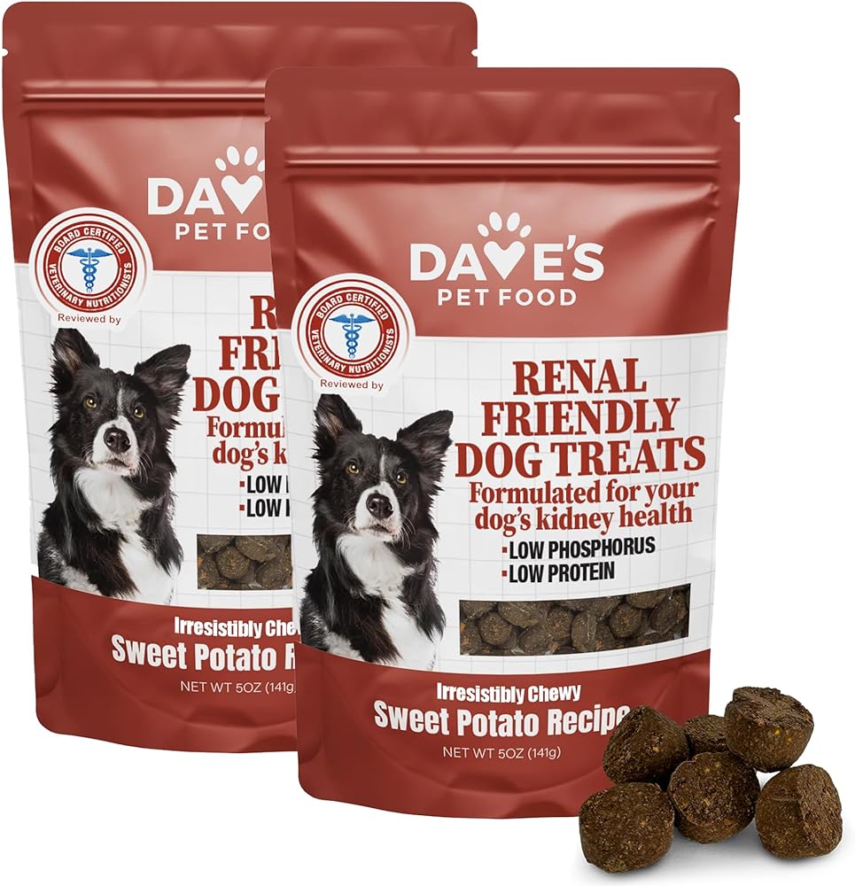 علاج الكلى للكلاب من ديف أغذية الحيوانات الأليفة للنظام الغذائي الكلوي، علاجات البطاطا الحلوة شبه الرطبة، علاجات مطاطية منخفضة الفوسفور، دعم الكلى للكلاب، يكمل طعام الكلاب الصديق (عبوتان)