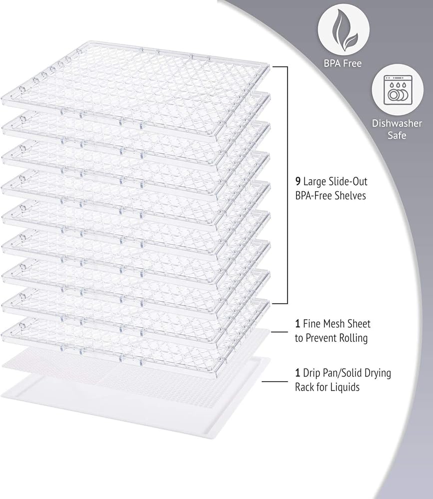 مثالية لتجفيف شرائح الفاكهة، والأعشاب المجففة طويلة الأمد، ولحم البقر اللذيذ والمزيد، كما أنها طريقة اقتصادية للحفاظ على الأطعمة