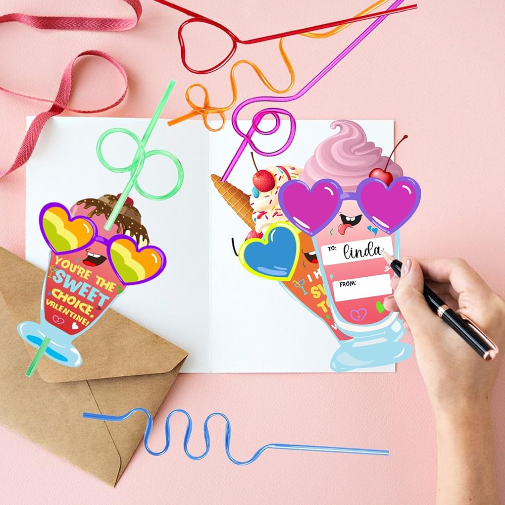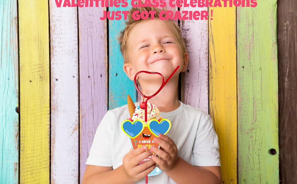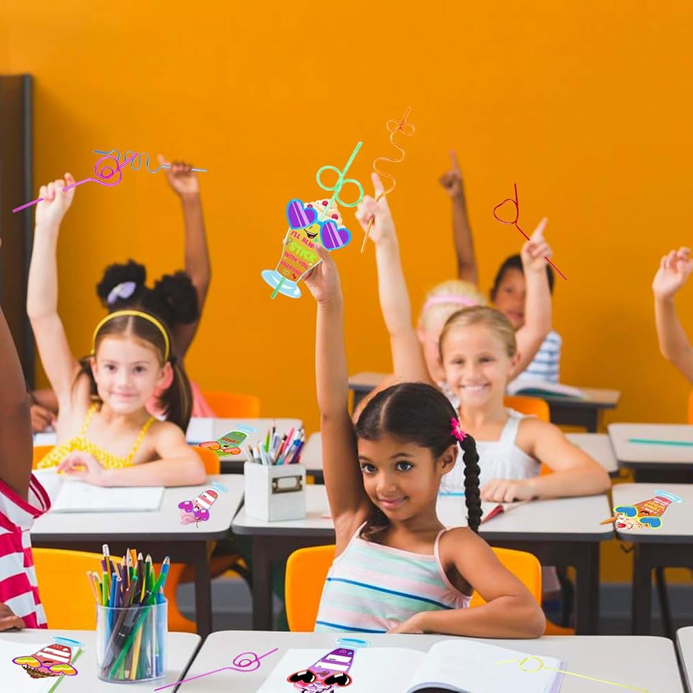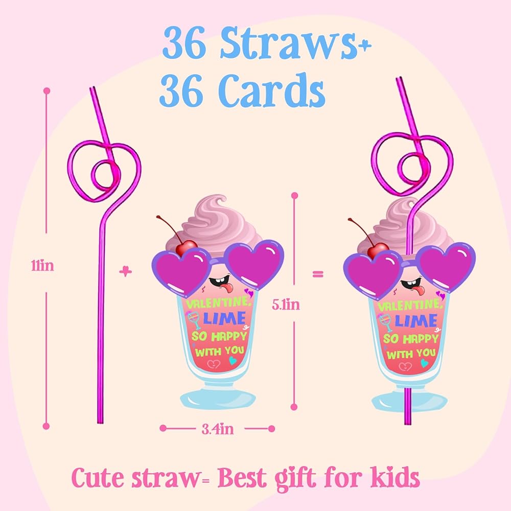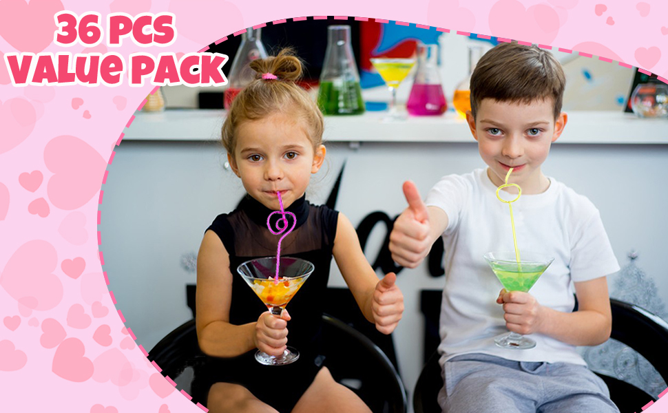 هدايا عيد الحب للأطفال، 36 حزمة من بطاقات عيد الحب مع مجموعة من القش المجنون القابل لإعادة الاستخدام - بطاقات تبادل عيد الحب للفتيات والأولاد والأطفال الصغار في الفصول الدراسية والحفلات المدرسية