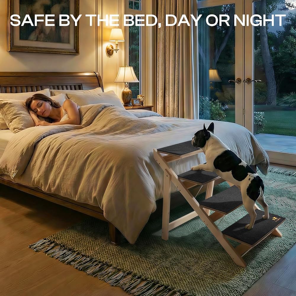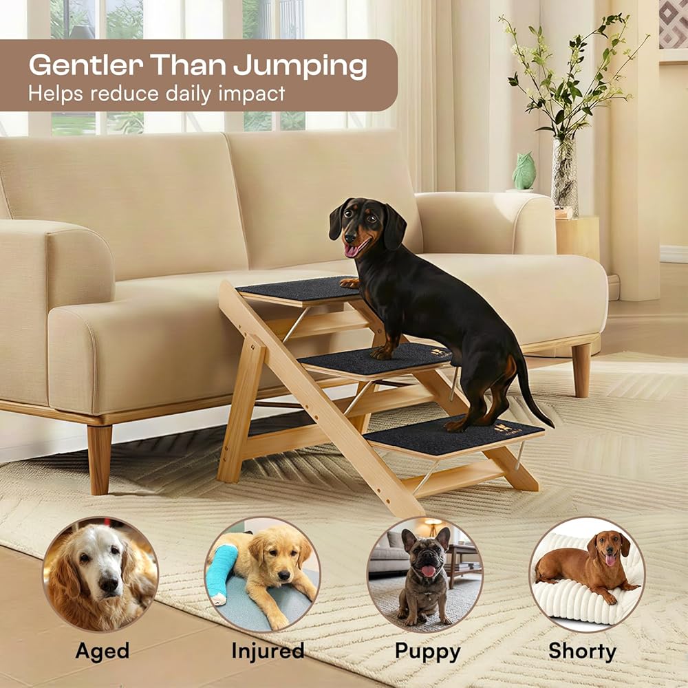 تصميم مانع للانزلاق: يتم تعزيز كل خطوة من هذه السلالم الخشبية بسطح من البوليستر الفاخر. توفر هذه المادة الراحة لمخالب حيوانك الأليف والجر الموثوق به غير القابل للانزلاق، مما يجعل كل صعود ونزول أكثر أمانًا وأقل جهدًا - مثالية للكلاب الأكبر سنًا أو الجراء أو السلالات قصيرة الأرجل للوصول إلى الأثاث بأمان دون القفز.