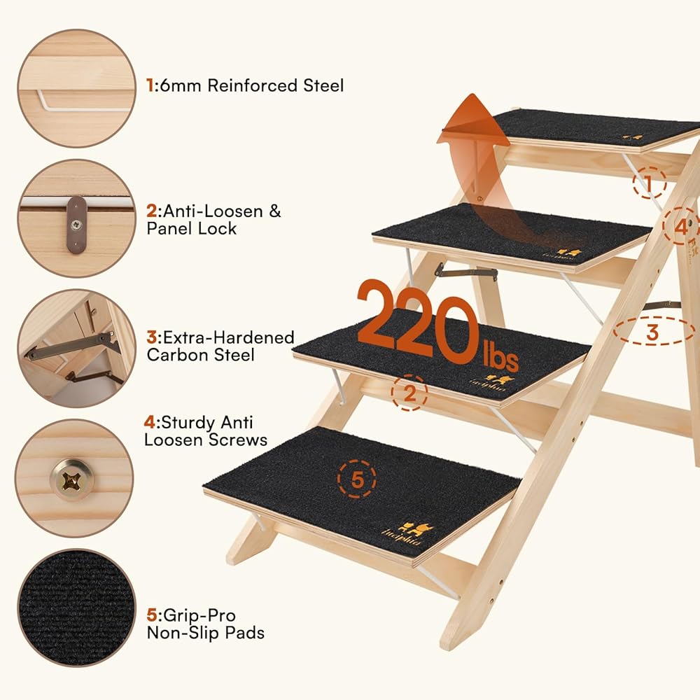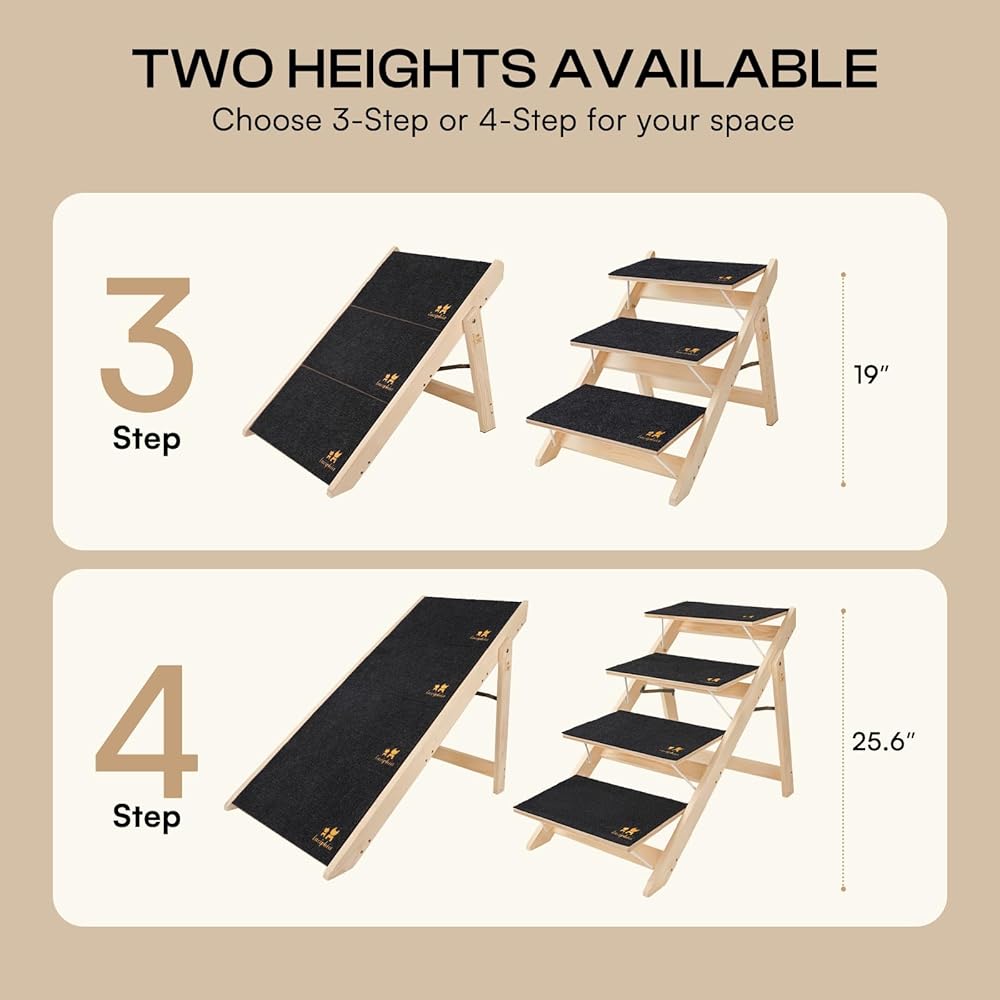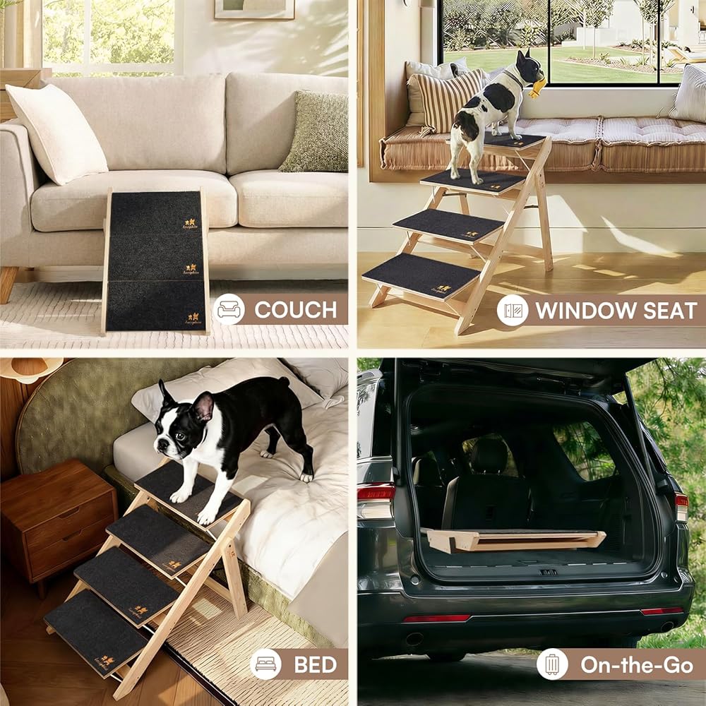 سلالم الكلاب الخشبية من لوسيفيا للكلاب الصغيرة 2 في 1 خطوات الكلب القابلة للطي للأسرة والسيارات والأريكة ومنحدر الحيوانات الأليفة المضاد للانزلاق مع 3 خطوات سلالم الحيوانات الأليفة الداخلية للقطط الأليفة المتوسطة والكبيرة الأكبر سنًا حتى 220 رطلاً