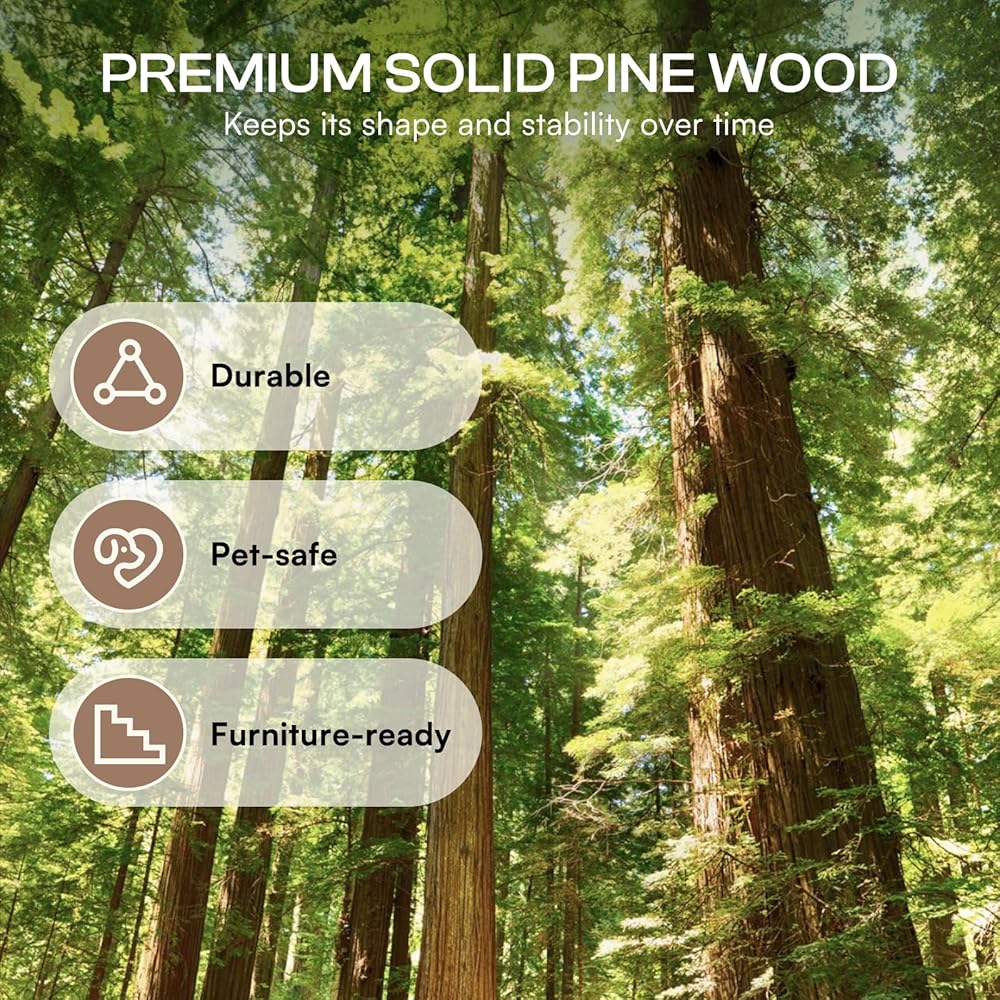 خشب صلب ممتاز ومواد آمنة للحيوانات الأليفة: مصنوع من خشب الصنوبر الطبيعي عالي الجودة لمتانة فائقة وجمال ريفي. اللمسة النهائية الناعمة والآمنة للحيوانات الأليفة غير سامة وخالية من الروائح، وتحمي أقدام حيوانك الأليف من الشظايا. إنه بديل متين وصديق للبيئة لخطوات الحيوانات الأليفة البلاستيكية الواهية.