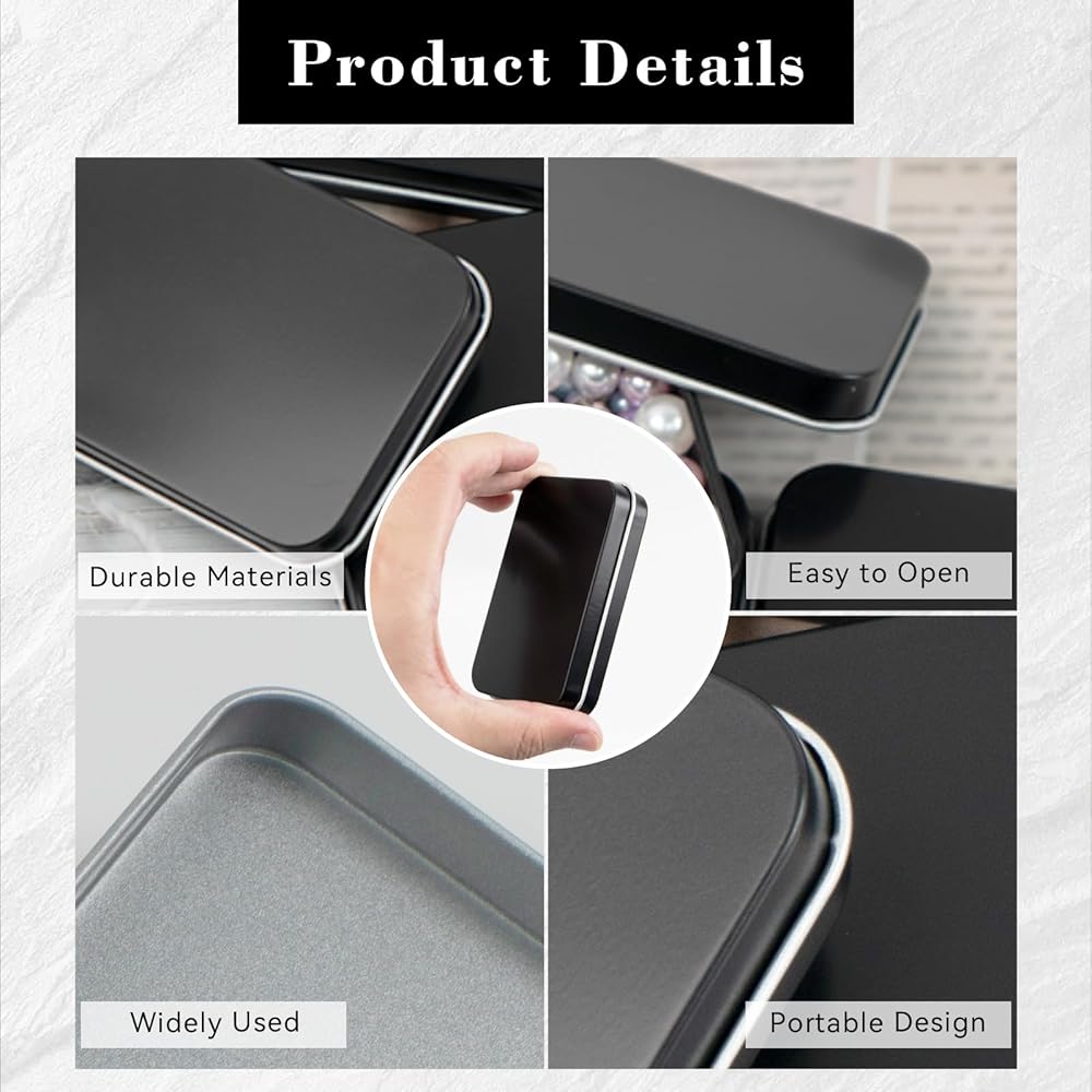 Easy to use: Our metal rectangular tins with lids is complete with airtight lids, keeps your valuables dry, shielded from the sun, and prevents leaks during transit; A convenient size for treasured collections, you can decorate tins with your own sense of style.