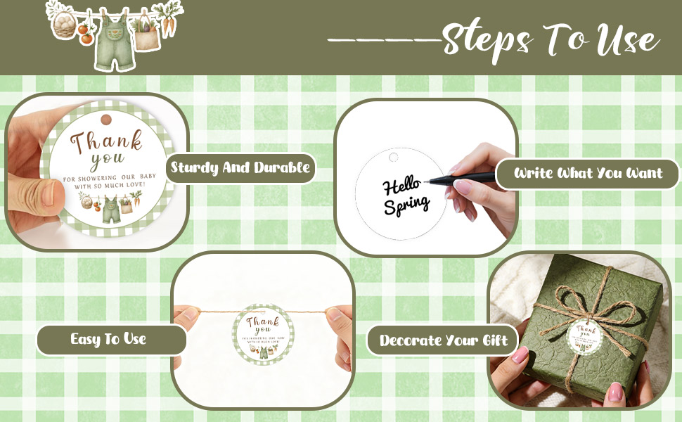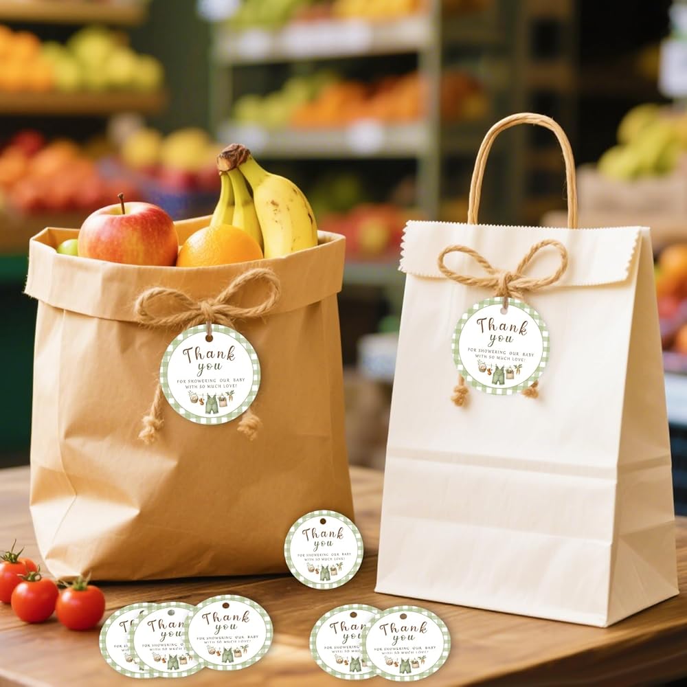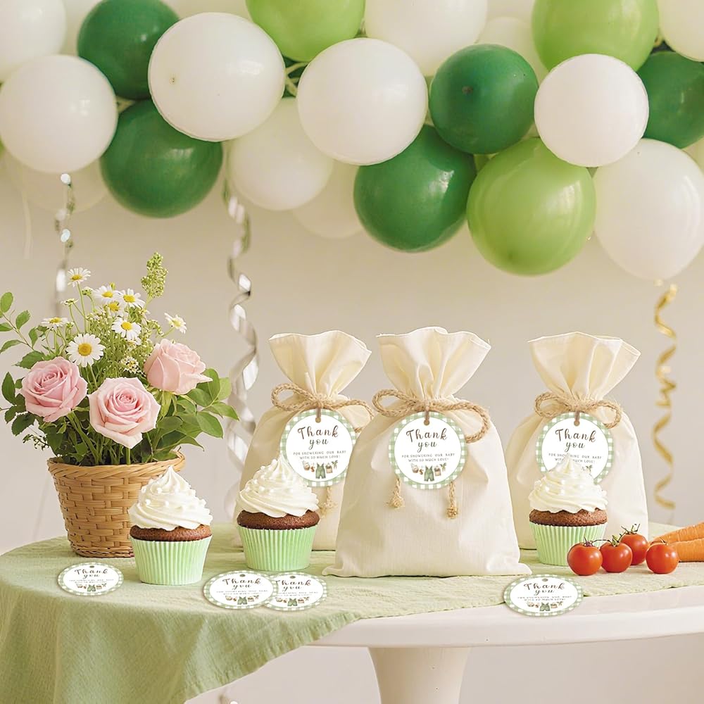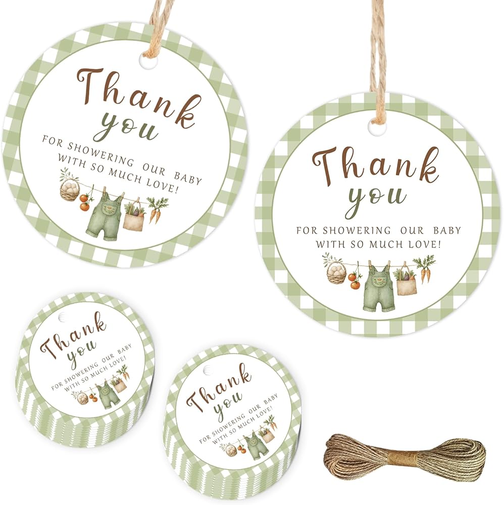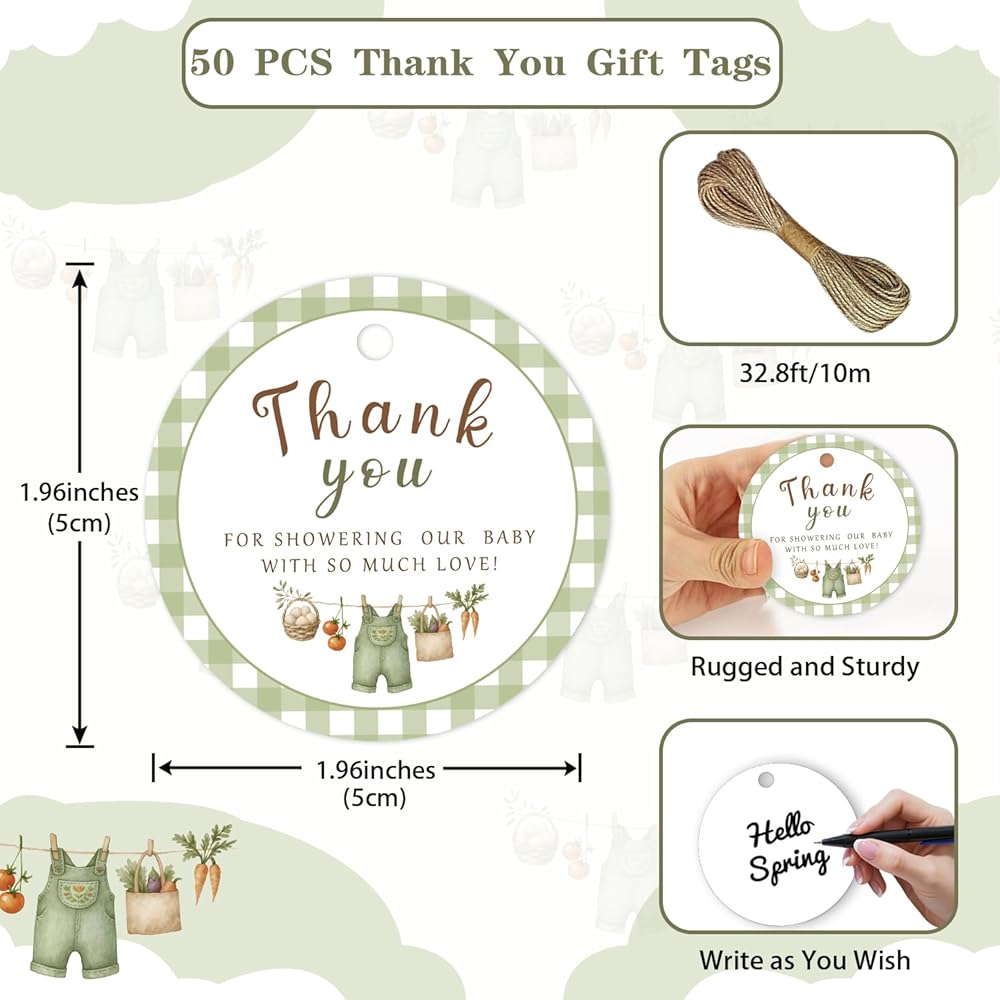 50 قطعة من سوق المزارعين المحليين، علامات شكر دائرية من القماش القطني الأخضر، علامات هدايا، زينة استحمام الطفل المزروعة محليًا للصبيان والبنات، مستلزمات استحمام الطفل، تكشف عن الجنس، مستلزمات الحفلات
