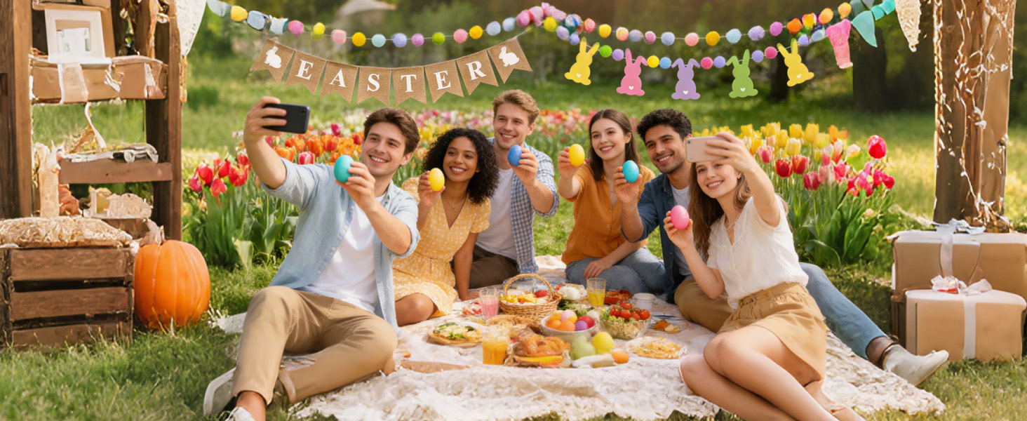 خلفية يجب اقتناؤها لصور وسائل التواصل الاجتماعي الفيروسية - مجموعة إكليل عيد الفصح المكونة من 4 قطع وإكليل كرة بوم بوم على شكل أرنب تخلق خلفية احتفالية مثالية للصور ومثالية للتصوير الفوتوغرافي بطابع عيد الفصح على Instagram وFacebook وTikTok وPinterest وغيرها من المنصات الاجتماعية. سواء كانت صور صيد بيض عيد الفصح اللطيفة للأطفال، أو صور عيد الفصح العائلية، أو لقطات جماعية للحفلات، أو حتى طبقات مسطحة من هدايا/هدايا عيد الفصح، فإن مجموعة اللافتة هذه ستجعل صورك أكثر حيوية وتميزًا وجاذبية.