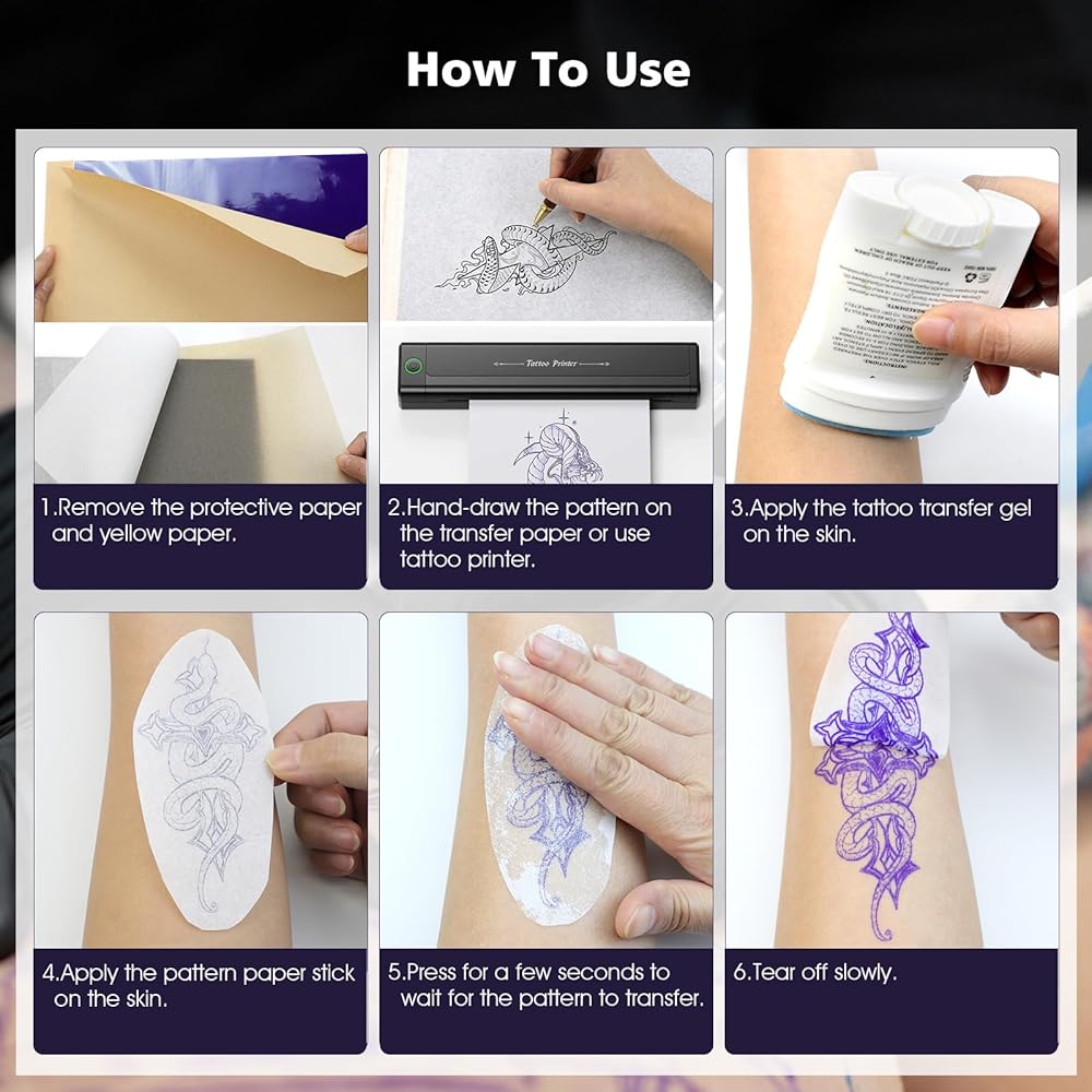 نصيحة ودية: 1، يتطلب ورق استنسل الوشم نقل كريم/جل (اشتريه بشكل منفصل) لنقل النمط الخاص بك على الجلد. 2، إذا كنت تستخدم الطابعة، فيرجى تنظيف الطابعة بانتظام، واستخدام صورة بكسل عالية الدقة. لا تطبع صورة الظل المعقدة والكبيرة.