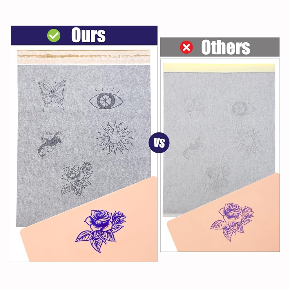استخدام متعدد الاستخدامات: متوافق مع كل من التتبع اليدوي باستخدام طرق طباعة القلم الرصاص/القلم والوشم لإنشاء تصميمات مفصلة، متوافق مع طابعات الوشم الحرارية المتعددة، جودة تجارية.
