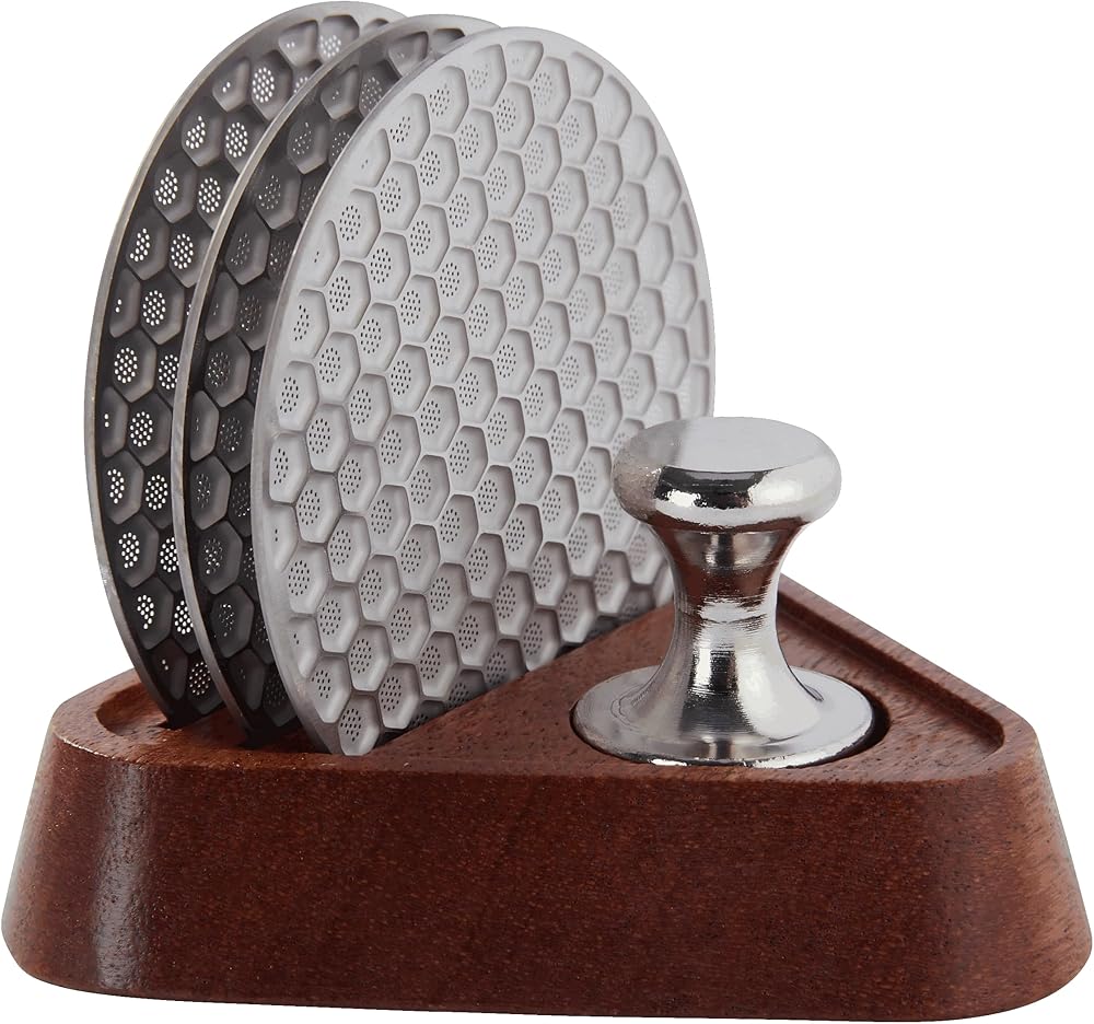 جنبًا إلى جنب مع ملحقات Teyearlife Espresso: تتناسب شاشة القرص بشكل مثالي مع مرشح القهوة بدون قاعدة مقاس 54 مم من Breville ويمكن أيضًا وضعها على محطة دك الجوز في أمريكا الشمالية