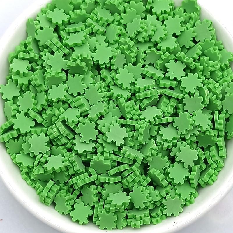 NON-EDIBLE CRAFT SPRINKLES: 100g of green shamrock-shaped fake sprinkles designed exclusively for crafting purposes, not for consumption