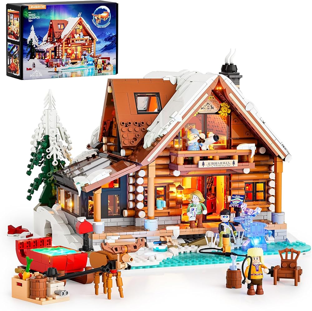 مجموعة مكعبات بناء إضاءة عيد الميلاد من أورورا - كابينة - 2425 قطعة من منزل ريترو هاوس وينتر لودج LED بناء بناء نموذج قرية عيد الميلاد للبالغين والعائلات