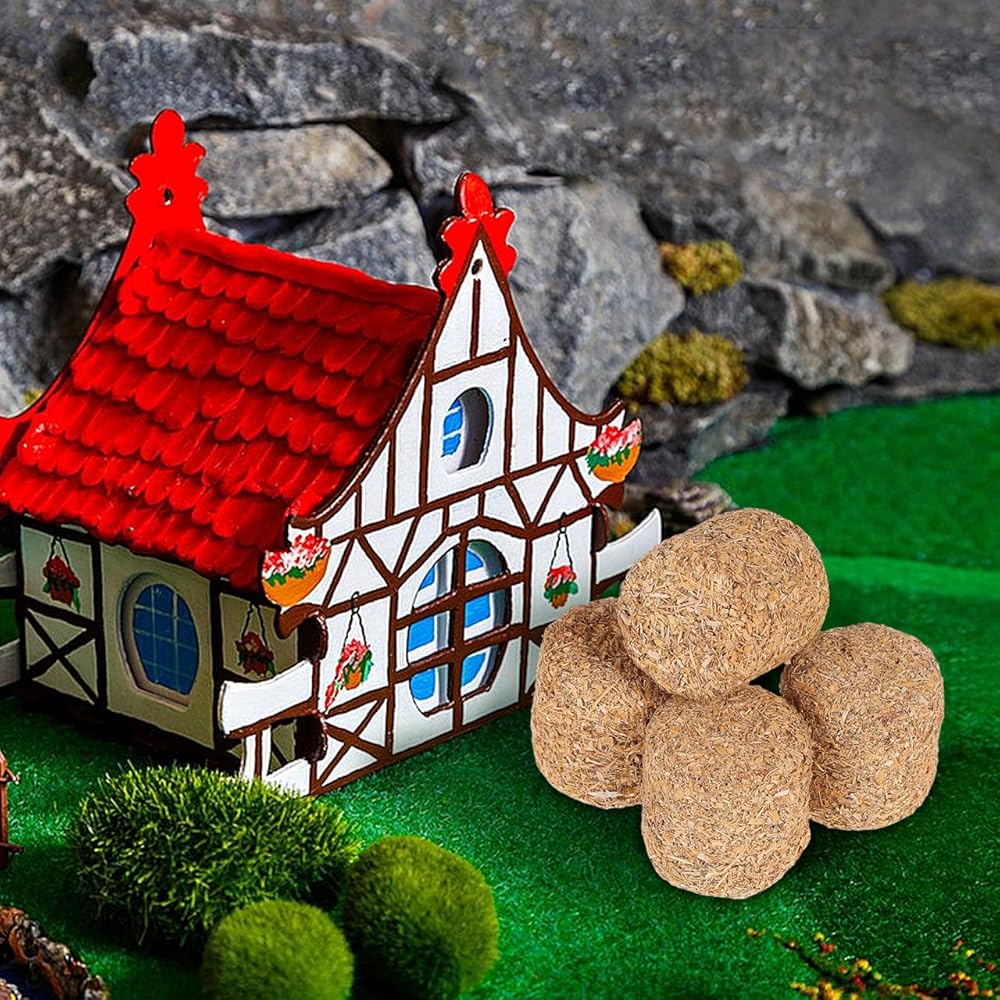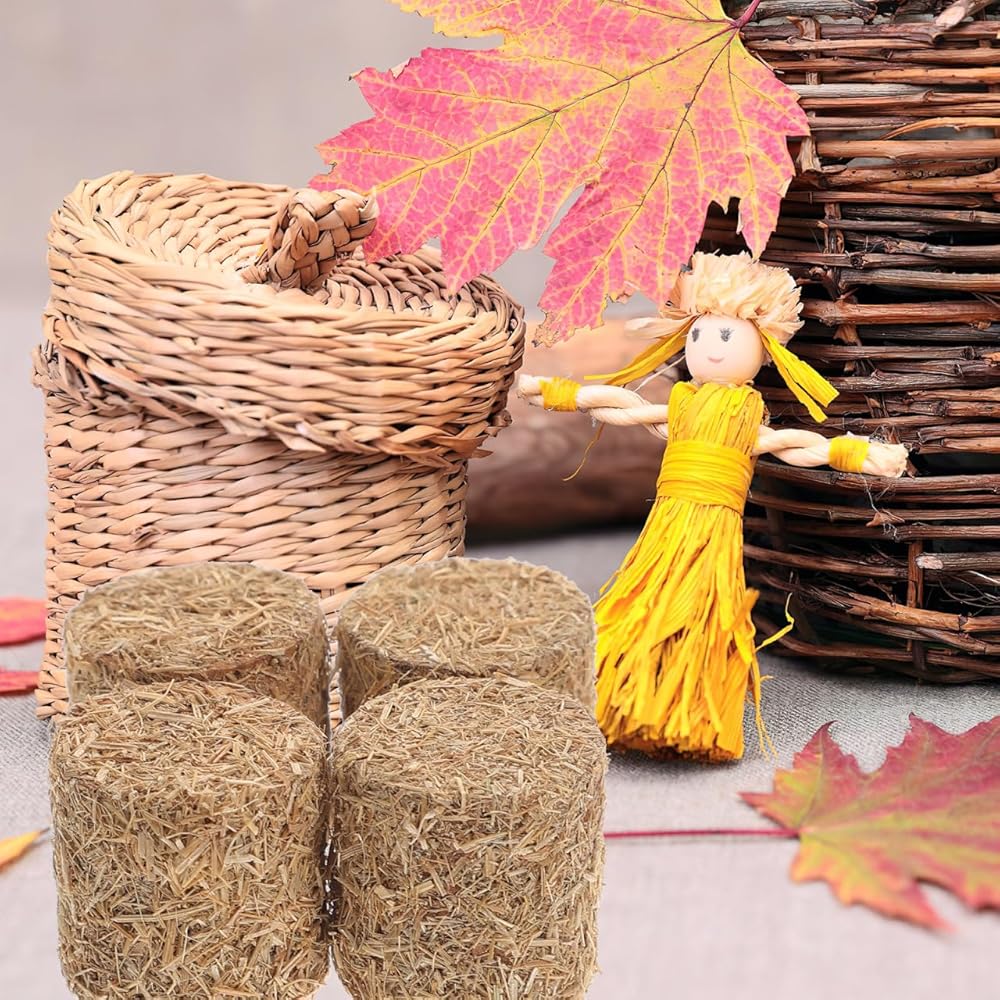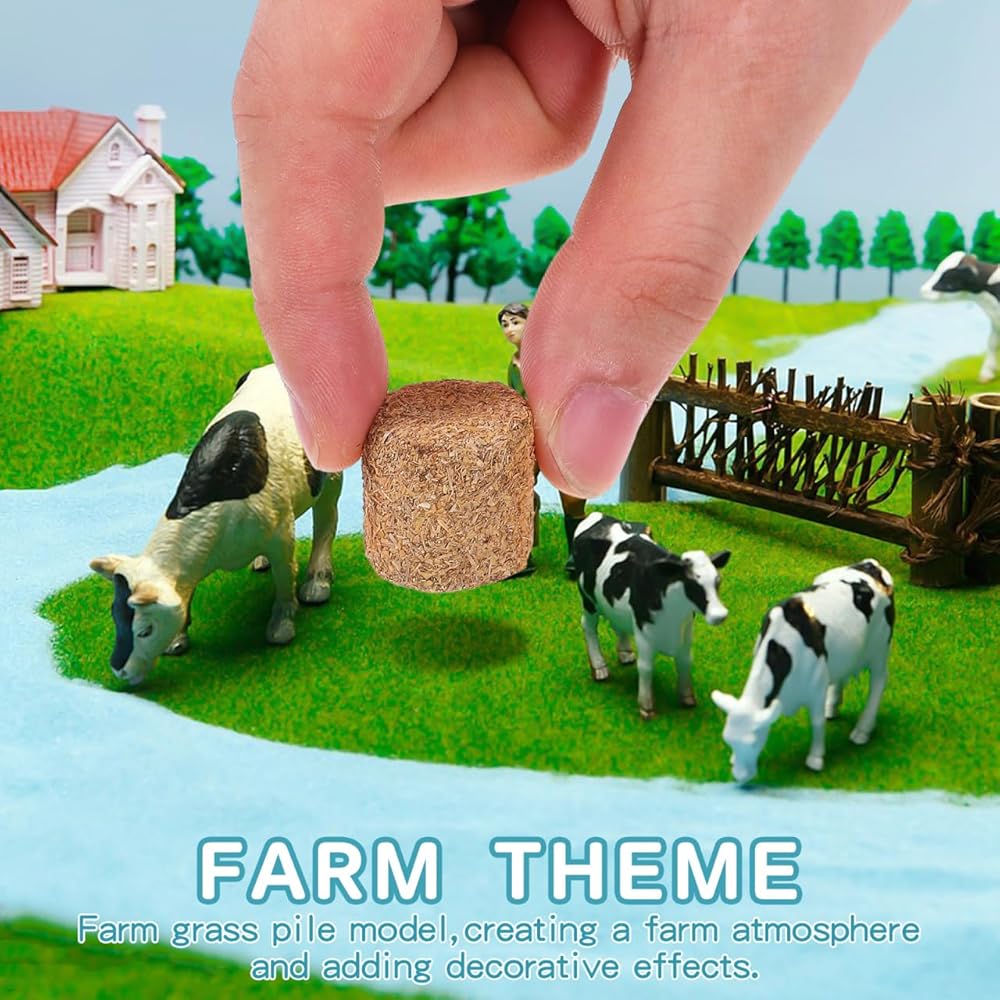 استخدامات متعددة: ديكور مثالي لبالات القش الصغيرة لمشاهد متعددة، تعمل بالات القش الصغيرة هذه للديكور بشكل جيد في إكسسوارات بيت الدمى، أو الحدائق المصغرة، أو ديوراما المزرعة، أو العروض الموسمية مثل الهالوين وعيد الميلاد، مما يسمح بالإبداع لكل من بيوت لعب الأطفال ومشاهد جامعي البالغين.