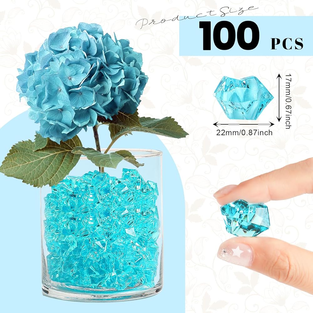 الكمية والحجم: تحتوي كل مجموعة على 100 قطعة تقريبًا من مكعبات الثلج المزيفة، لون أزرق بحيرة، 17 × 22 مم؛ كمية وافرة للديكور اليومي أو المشروعات الإبداعية
